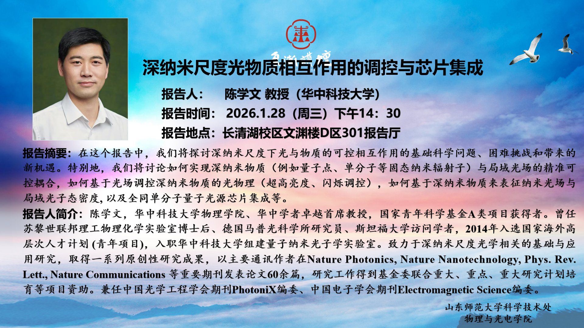 近日,英国365上市公司蔡阳健教授、陈险峰教授、付神贺教授团队联合暨南大学陈振强教授团队以及南洋理工大学申艺杰教授团队在国际顶级期刊《Nature Physics》发表题为“Electrically tuning photonic topological quasiparticles in synthetic two-level system”的研究论文。365上市公司为第一完成单位,博士生贾俊辉为论文第一作者,付神贺教授、蔡阳健教授、陈险峰教授为论文通讯作者。当前,拓扑准粒子已成为凝聚态物理和材料物理领域的研究热点。...
