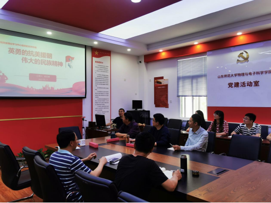 2021年5月25日下午,物电学院党委理论学习中心组在文澜楼A座311会议室开展党史学习教育,物电学院副院长、党委委员赵曰峰同志以“英勇的抗美援朝,伟大的民族精神”为主题讲授专题党课,学院党委领导班子及各党支部书记出席会议。会上,赵曰峰带领大家共同回溯美国发动对朝鲜全面战争的历史背景和国际环境,以及中国人民志愿军肩负着人民的重托、民族的期望,高举保卫和平、反抗侵略的正义旗帜,雄赳赳、气昂昂,跨过鸭绿江对美...