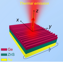 传统热辐射是由物体中的各种热波动引起的,因此是宽带的、全向的,通常被认为是非相干的。如何使用人工方法选择性地增强规则热发射中的特定过程,以最终实现具有受控特性的辐射输出,例如光谱带宽、光束轮廓、空间分布、偏振等,代表了一种新的研究方向。近年来,全介质结构中的紧束缚态模式,包括准连续域中束缚态及准导模等,因其能够实现超窄的共振线宽而被人们广泛关注。基于此,该团队先前在理论和实验上实现了超高时间相干热发射(Nanophotonics. 10(16): 4035–4043(2021),Int. Commun. Heat Mass Transfer. 143 106728 (2023)),为下一代非色散红外(NDIR)系统等应用提供了优异的光源。而对于具有空间相干需求的热辐射源来说,尤其法向输出,光锥下方具有天然陡峭色散分布的导模(GM)表现出极其显著的优势(Phys. Rev. Appl. 20(2), 024033 (2023))。