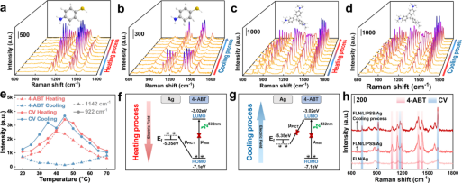 在该工作中,课题组利用飞秒激光加工技术在铁离子掺杂铌酸锂(FLN)晶体表面制备了大面积周期性纳米结构(LIPSS)并在其表面修饰银纳米颗粒,获得了新型的表面增强拉曼散射(SERS)基底。LIPSS结构通过电磁增强机制有效提升了基底的 SERS 性能。在恒温条件下,R6G的检测限为 10-10 M。更为重要的是,课题组利用FLN 晶体的热释电效应进一步促进了基底与分子之间的电荷转移,使得R6G 的检测限降低至10-11 M。因此,在单一基底上实现了电磁增强和化学增强的协同作用。利用该基底课题组实现了混合废水中目标分子方面的检测和区分。相关研究成果在环境保护、生物分析等领域具有潜在的应用价值。