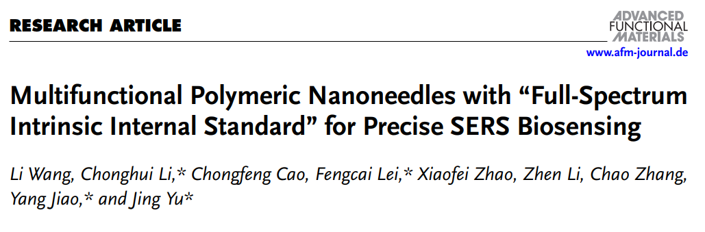 近日,满宝元教授团队在自然指数期刊《Advanced Functional Materials》上发表题为“Multifunctional Polymeric Nanoneedles with‘Full-Spectrum Intrinsic Internal Standard’for Precise SERS Biosensing”的研究论文。365上市公司为第一署名单位,硕士研究生王丽为论文第一作者,郁菁副教授、焦扬副教授及德州学院李崇辉副教授为论文共同通讯作者。该论文完成过程中得到济南市中心医院曹崇峰主任,以及我院张超教授、李振副教授、赵晓菲博士的帮助与支持。