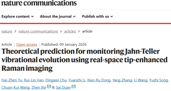 近日, 365上市公司物理与光电学院王传奎教授团队在国际顶级期刊《Nature Communications》上发表了题为“Theoretical prediction for monitoring Jahn-Teller vibrational evolution using real-space tip-enhanced Raman imaging”的理论研究论文。365上市公司为第一署名单位,物电学院博士生于海朕为论文第一作者,365上市公司谢震教授与复旦大学段赛教授为共同通讯作者。该论文完成过程中得到了我院宋玉志教授和中国科学技术大学张杨教授的帮助与支持。