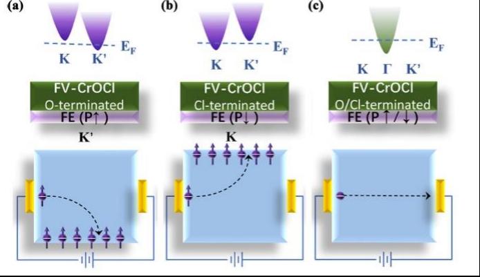 反常谷霍尔效应(AVHE)实际应用的前提是实现能谷劈裂的可调性和非易失性。作者预测了一种铁谷材料Janus 1T CrOX(X=F,Cl,Br,I),其中的AVHE的开关效应可以通过调整双轴应变或构建多铁异质结构CrOX/In2Se3来实现。CrOX中稳定的面外磁化诱导了CrOBr单层膜的能谷劈裂,可达112mev。有趣的是,作者发现CrOCl的能谷劈裂对导带和价带的双轴应变都具有鲁棒性。相比之下,CrOBr在导带处的能谷劈裂可以线性调制,同时压缩应变诱导的强轨道杂化导致能谷劈裂在价带处具有开关响应,因此可以实现AVHE的可逆开关。此外,在多铁性范德华异质结CrOCl/In2Se3中还存在电可逆能谷劈裂开关现象,而且还可以通过控制铁电层的极化状态来操纵AVHE的可逆开关。以上研究表明作者设计的材料在能谷电子学领域具有一定的应用前景。