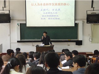 4月9日下午,在教学二楼2214阶梯大教室,物电学院举行学习与实践科学发展观专题报告会,邀请政法学院副院长、博士生导师万光侠教授做《以人为本是科学发展观的核心》的专题讲座,学院全体教职工和学生党员参加了报告会。