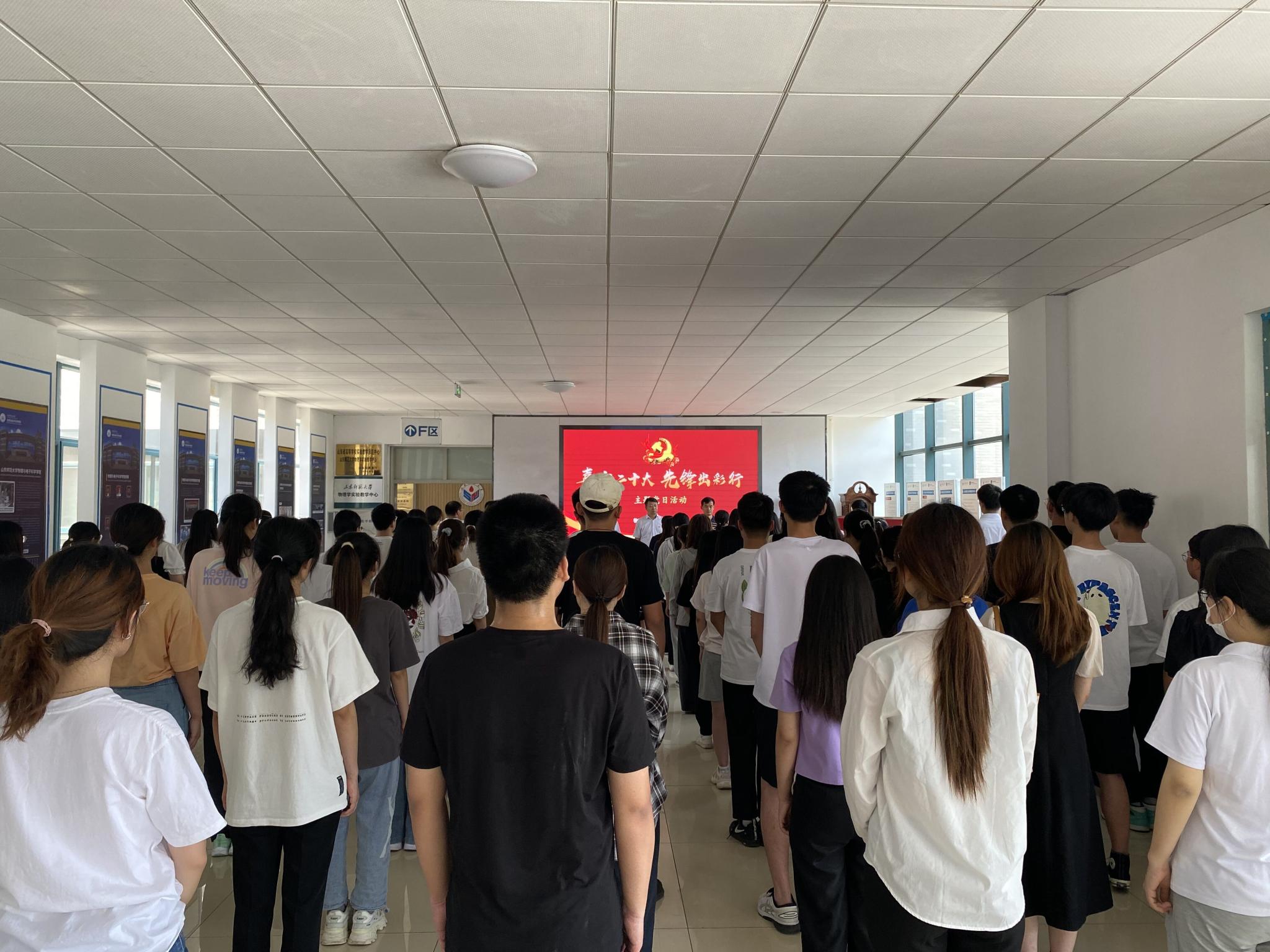 6月8日中午,英国365上市公司于文澜楼A区二楼大厅举行“喜迎二十大,先锋出彩行”主题党日活动。学校党委组织部副处级组织员尚延山,学院党委书记谢德仁,院长蔡阳健,副院长赵曰峰、宋玉志,团委书记周勇和全体辅导员出席,77名新发展党员参与此次党日活动。活动由党委副书记杜伟主持。