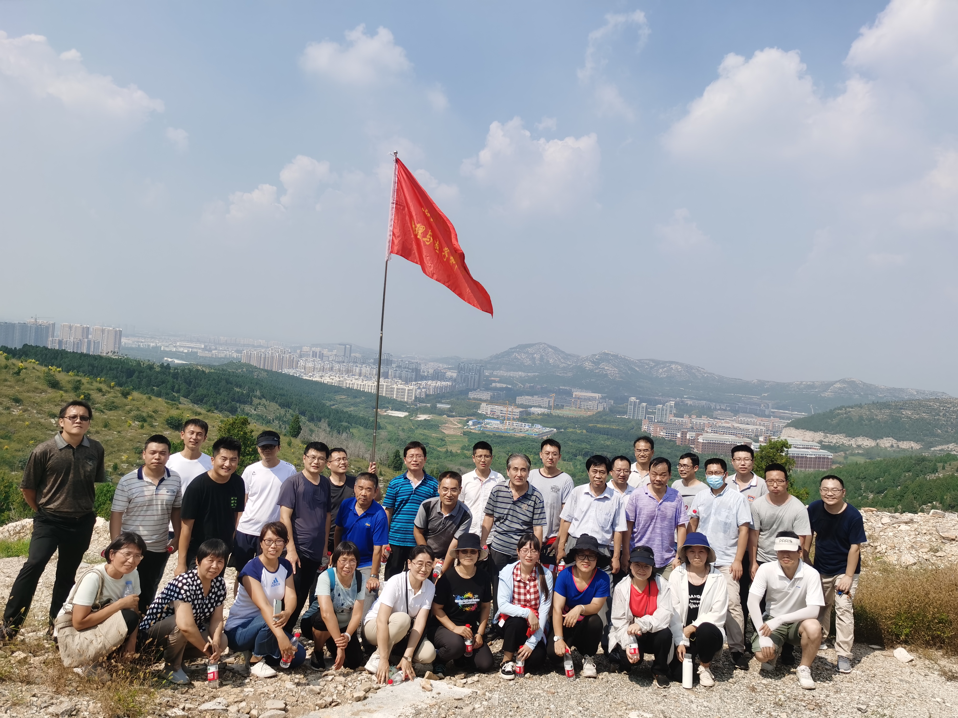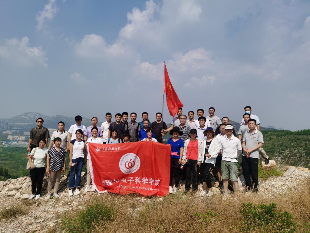 参加活动的老师们于12点45分在学院门口准时集合完毕,整装待发,并合影留念。老师们领取工会为大家准备的矿泉水后,活动正式开始。登山途中,大家三五成群,个个热情高涨,兴致勃勃,尽情享受沿途的美景,体力充沛者一马当先,经验丰富者稳中巧登。随着山势逐渐陡峭,尽管大家都汗流浃背,但都互帮互助,相互打气,一同向山顶攀登。山路上大家热切交流,呼吸着山间新鲜的空气,放松了平日紧张忙碌的心情,最终在一片欢声笑语中,大家成功登顶。