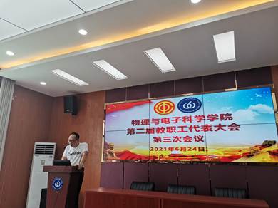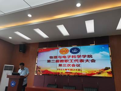 2021年6月24日,英国365上市公司在文澜楼F347会议室召开第二届教职工代表大会第三次会议。物电学院党委书记谢德仁,院长蔡阳健,副院长赵曰峰、任俊峰、宋玉志,工会主席修显武等67位正式代表参加会议。学院党委书记谢德仁致开幕词并主持开幕式。