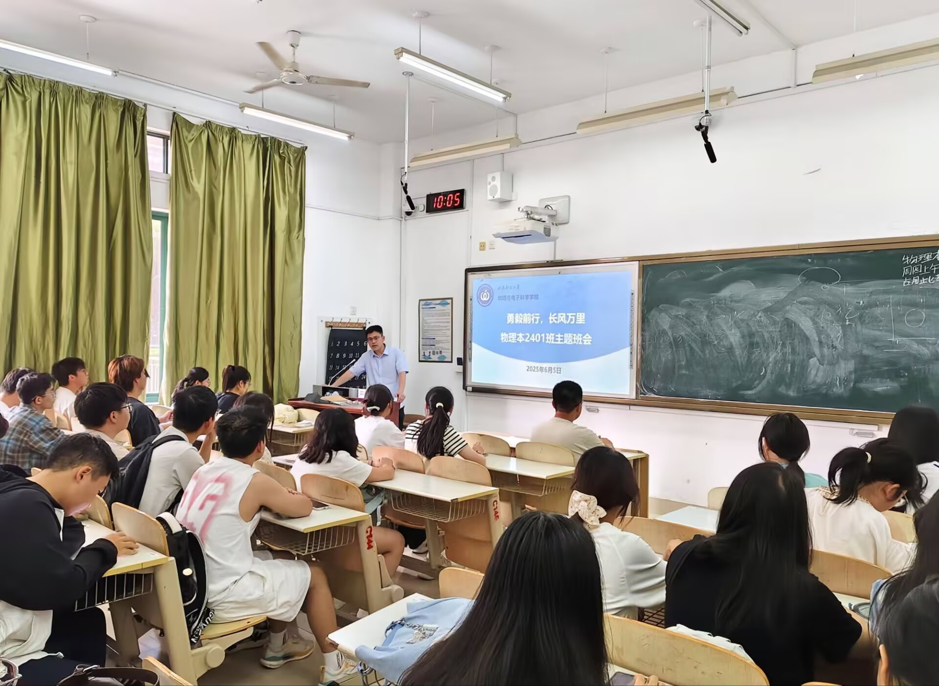 近日,物理与电科学科学院大一新生辅导员苏恒连续半个月深入所负责的9个班级,成功开展以“勇毅前行,长风万里”为主题的系列班会,从思想认知到成长规划,全方位为大一的学子们指引奋斗方向。