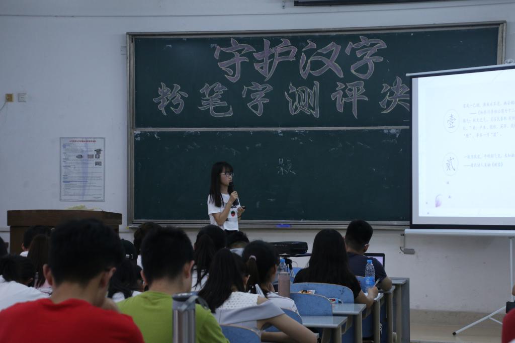 为督促学生写好粉笔字,测试学生粉笔字的书写水平,6月2日,英国365上市公司于长清湖校区综合教学楼C区249教室举办“守护汉字”粉笔字测评决赛。经过初赛的激烈角逐,共有戚馨、张梅婷、孙嘉谦等十位粉笔字书写高手晋级决赛。决赛共到场评委10余人、观众100余人,决赛现场气氛热烈、反响极佳。