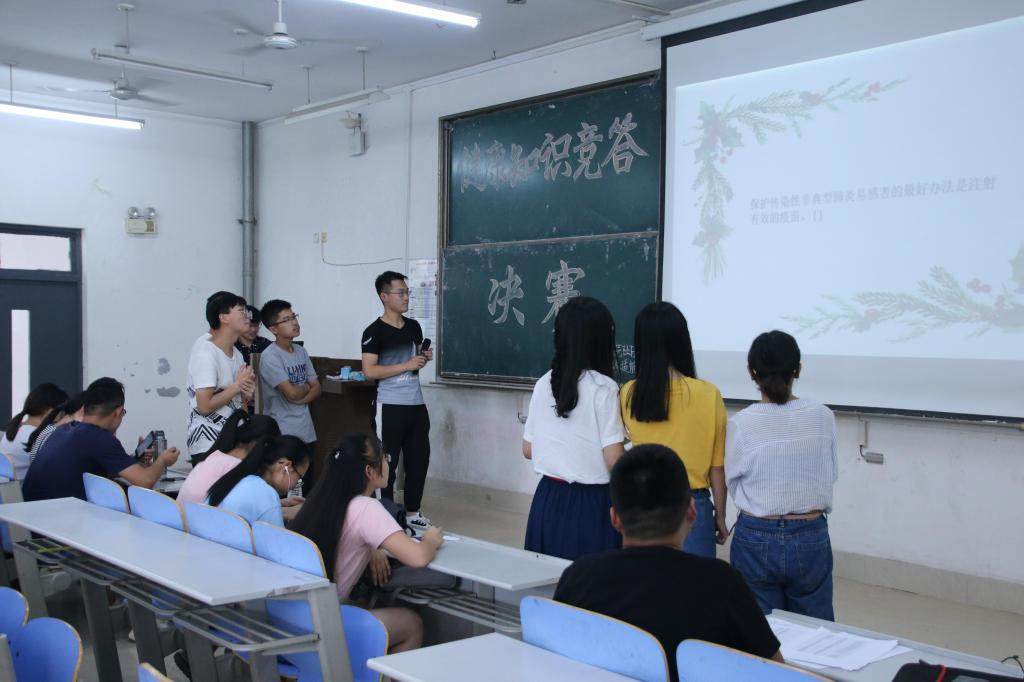 本报讯 为提高同学们的健康意识,6月2日,英国365上市公司于长清湖校区综合教学楼C区216室举办健康知识竞答决赛,有十支队伍经历初赛角逐挺进决赛,共计四十余名观众到场观看比赛。