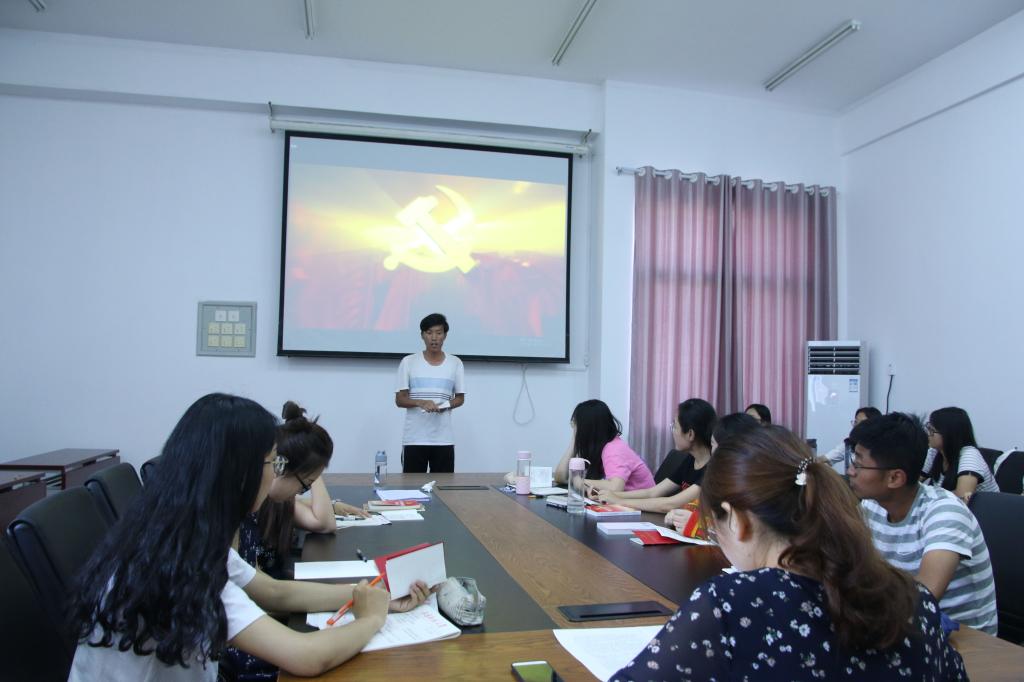 活动伊始,全体成员观看动漫片《入党》。本片主要介绍了《中国共产党发展党员工作细则》的主要内容、党员的发展历程以及申请入党的条件。通过观看影片,党员发展对象明确了入党的的具体步骤,了解了入党每阶段的注意事项。动漫内容翔实、画风活泼、逻辑清晰,有利于党员发展对象的自我比较。看完动漫片后,党员发展对象分成三个小组,讨论影片的观后感以及近几日培训的感悟。讨论结束后,三组分别推出代表发言。其中,2016级电子信息工程二班刘宣钰说,学习党章不能固化;作为新青年,有必要出国深造,但学成之后应回国建设;要向艰苦奋斗的人学习;及时向党组织汇报思想;深入贯彻党的思想理论。其他两组的发言也同样精彩,赢得在座听众的热烈掌声。姚方圆点评道,共产党就是在不断修正错误、反省自身的过程中提高进步的。在向党组织进行书面思想汇报时,要将真情实感与真实感悟融合进去。同时,她提醒同学们,要有民族自豪感与责任感,积累实干经验,努力成为对国家、对共产党有用的人。本次活动的一大亮点是有奖知识竞赛。姚方圆出题,考查发展对象对党的基本知识与时政的掌握度与熟练度,在场学生踊跃回答,现场气氛热烈。为增强党员发展对象的国际主义精神,学习共产党人的精神信仰,全体党员发展对象认真学习《国际歌》,随后,由2016级卓越物理班的王梦雪领唱了激励人心的《国际歌》。培训最后,发展对象填写材料并总结培训心得体会,确定了接下来的奋斗方向。