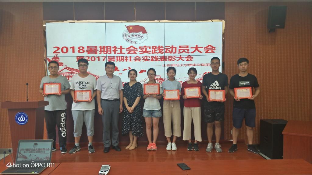 本次活动主要由在以往社会实践中成绩显著的学生作经验汇报,分享自己的心得体会。首先发言的是2015级光电信息科学与工程二班郭斌廓。他的发言从实践前、实践中、实践后三个方面展开。他表示,实践前应明确实践主题,提前联系媒体,做好任务分配。在实践中要注意安全,留存资料。而在实践后,队长要确保队员安全到家,并进行实践队的撰稿与准备答辩工作。接着,由2016级物理一班郭泽玉进行汇报。他的汇报分为成果展示、前期准备、活动准备、后期处理四个方面。他对每个方面都展开详尽的解释。他幽默风趣的语言赢得现场听众的热烈掌声。现场气氛热烈活泼。接下来,2016级物理二班于露介绍社会实践宣传工作的主要内容。她着重介绍了微信推送与撰写新闻稿的要求与注意事项。于露鼓励队员尝试写稿,通过多种途径学习新闻稿与微信的写法。值得一提的是,她向同学们展示并详细分析了自己去年暑假所撰写的稿件。她的发言获得听众的连连认可。学生代表发言结束后,团委书记杜伟作指导讲话。他肯定并祝贺在2017年暑假社会实践中取得优异成绩的队伍。同时,他希望在今年的活动中,同学们能最大化地发掘资源,做好各方面工作,高质量地完成社会实践。本次活动的最后一项是表彰2017年暑期社会实践取得优秀成绩的学生及优秀实践项目。宋玉鑫等五人获“校级先进个人”称号,郭泽玉等三人获“省级优秀学生”称号,“禹爱童行”社会实践项目获“国家级最具影响力项目”。杜伟和姚方圆为受表彰的学生颁奖。