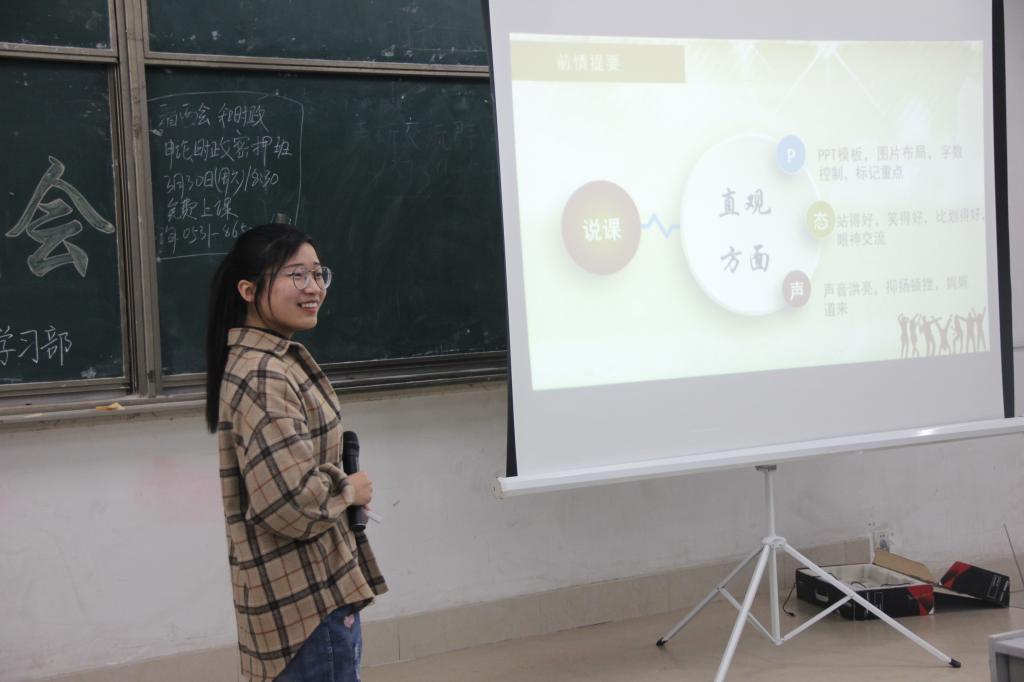 本次说课大赛培训会的成功举办,不仅使同学们进一步了解说课的具体过程,提高了同学们的说课技能,更为为学院接下来说课大赛的成功举办奠定了基础。