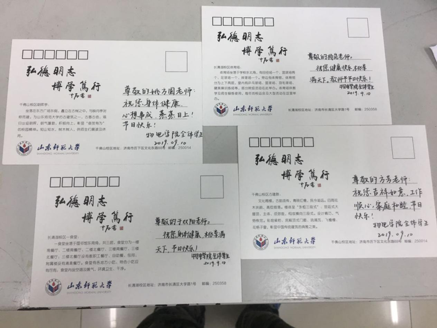 教师节当日,物电学院2017级学生组织祝福朗读活动,在老师进入教室时全体起立,大声朗读写给老师们的祝福,抒发对老师们的热爱和情感。随后,各班学生将提前制作好的祝福与感恩视频赠予老师。视频共分三部分组成,分别是对老师平日辛勤的描写和工作时的照片、来自班级的祝福以及来自学生会同学们的祝福。视频记录的点点滴滴勾起了老师们的回忆,一声声“老师,您辛苦了!”“老师,我爱您!”“谢谢您,老师!”更是让老师们感动不已,师生之情在一段段画面中得以升华。下课后,学生会成员将写满同学们祝福的一百多张贺卡送到了物电学院每一位老师手中,每一位书写卡片的同学都将自己的真情实感充实在卡片之中,希望小小的卡片能给辛劳的老师带去丝丝温馨。最后,学生们手捧鲜花,来到老师和辅导员的办公室,将美丽的鲜花献给敬爱的老师,以此表达他们深切的感恩和尊敬之情。