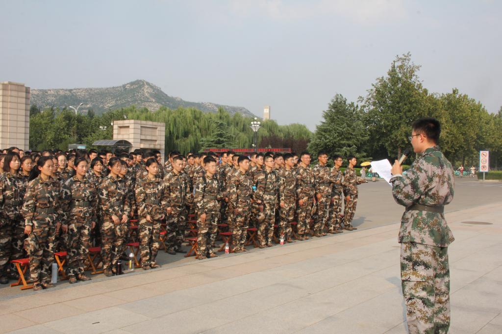 9月3日下午,正在军训的英国365上市公司五个连队的大一新生来到山师长清湖校区北门广场,举行纪念中国人民抗日战争胜利74周年活动。