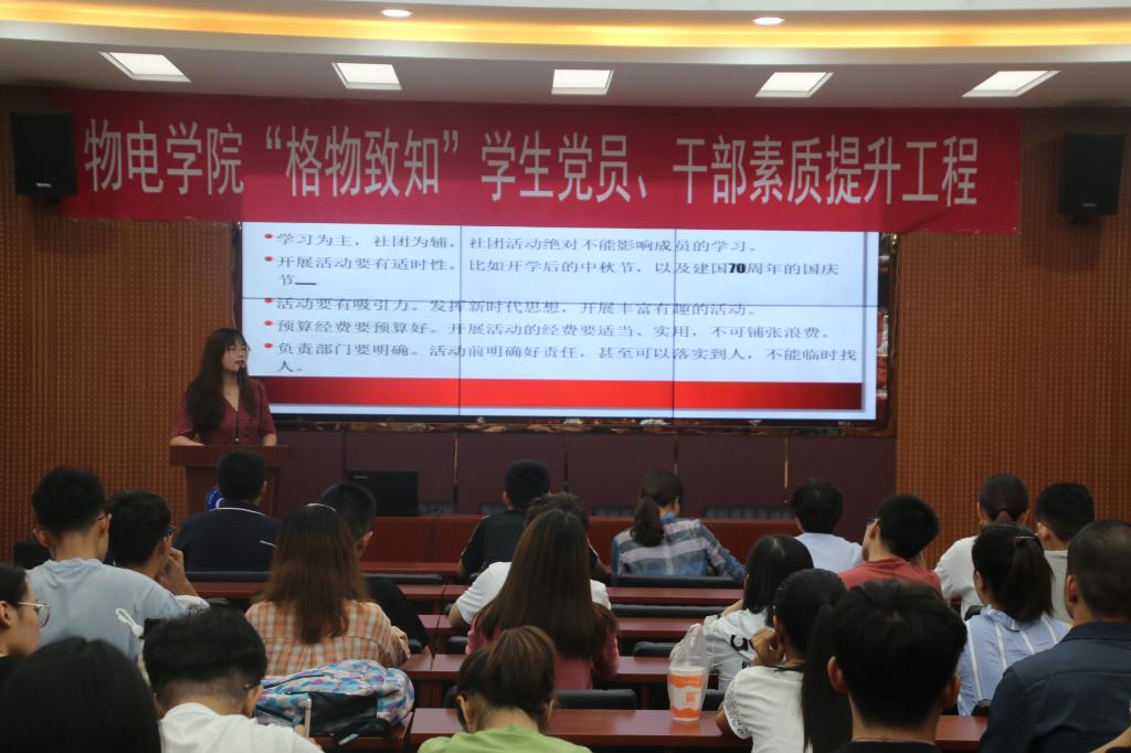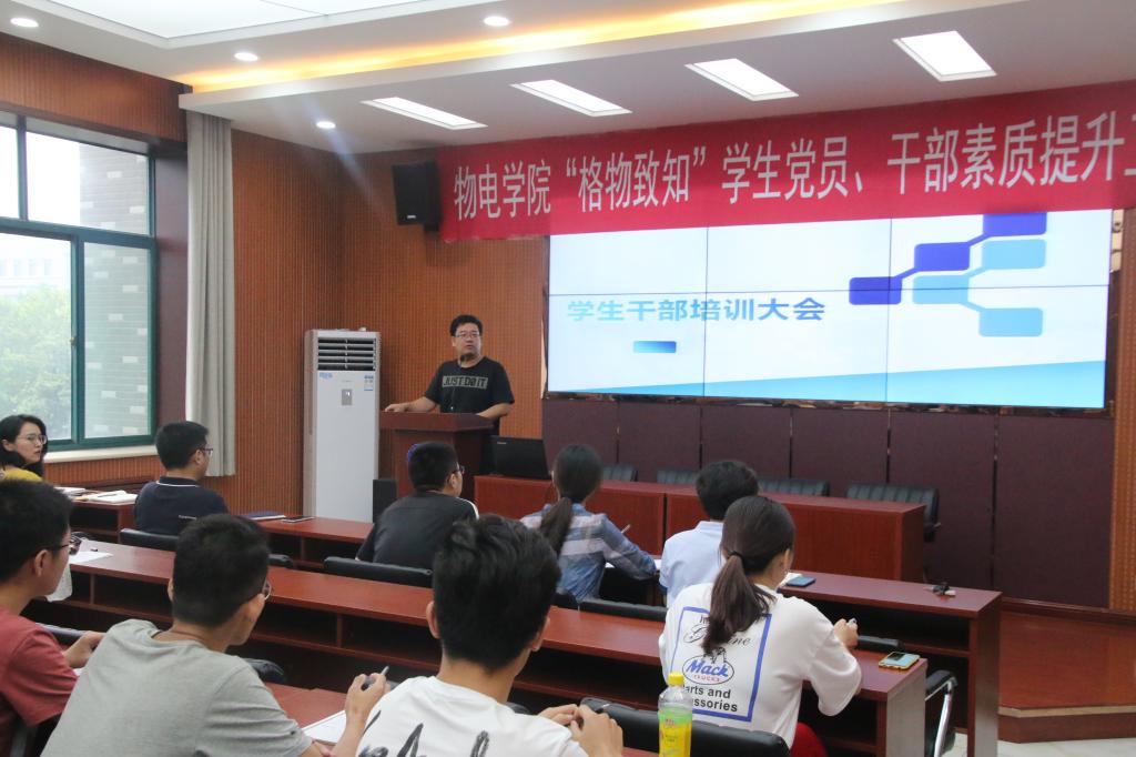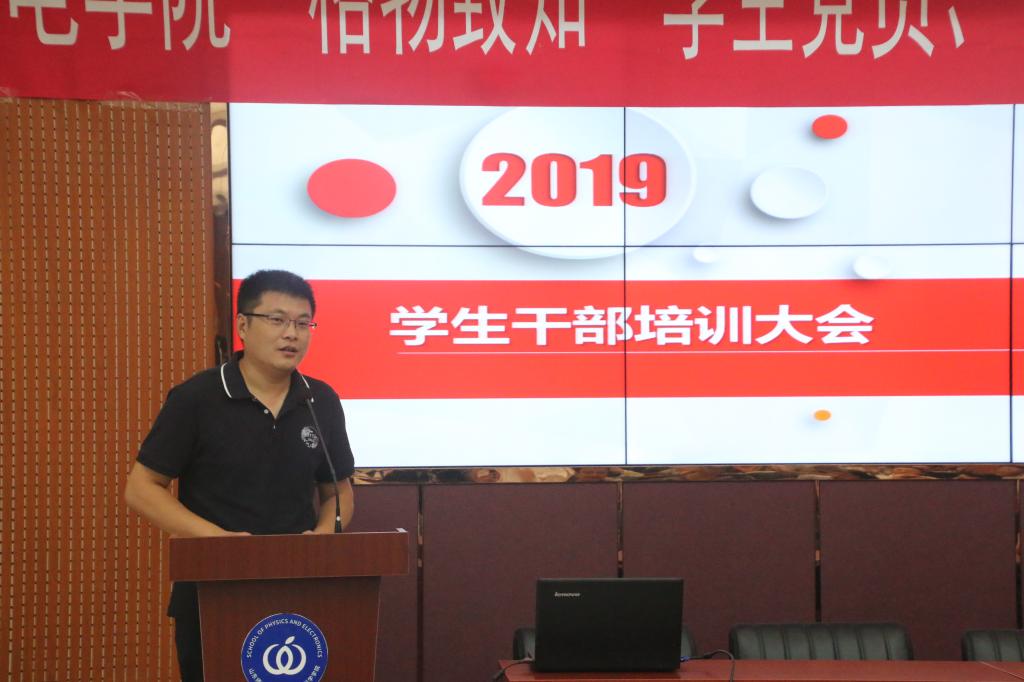 为确保开学各项工作落实到位,提升学生干部工作水平,8月25日,英国365上市公司于长清湖校区文澜楼A区347报告厅召开“格物致知”学生干部素质培训会。会议由学院党委副书记杜伟主持,团委书记周勇,辅导员杜军、方芳、杨岚、于双阳、刘婷参加本次会议,本科生、研究生各年级班长、团支书,学生会、研究生会全体成员到场培训。