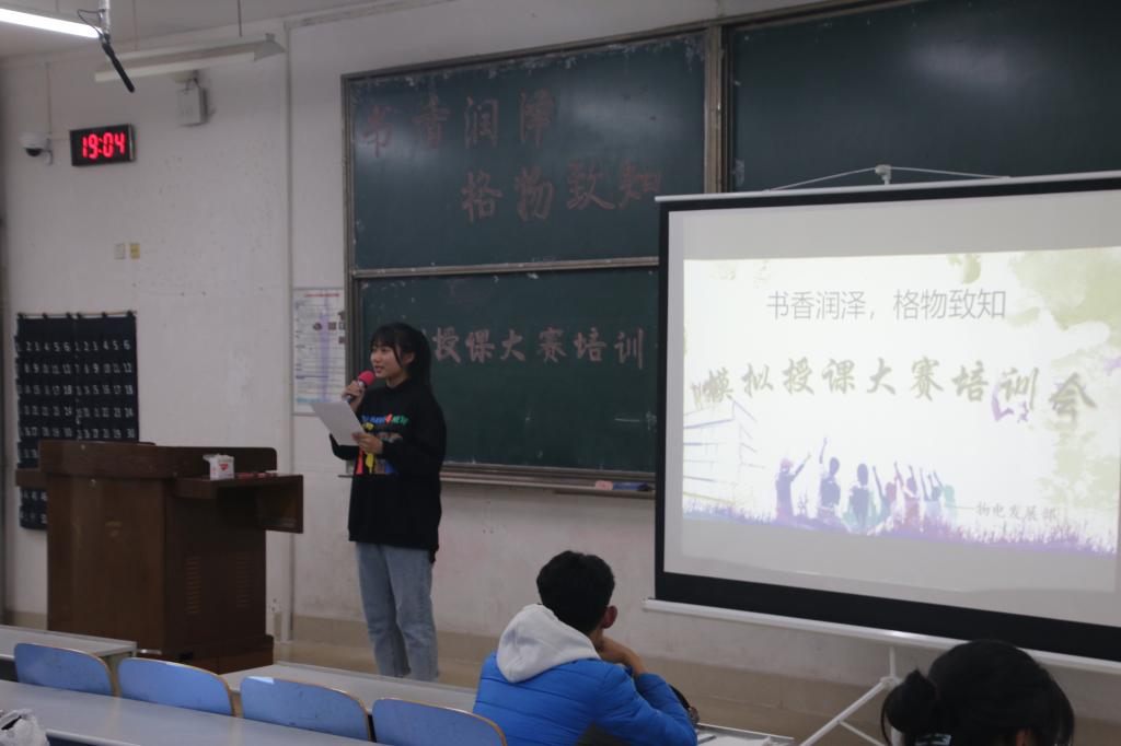 本次模拟授课大赛培训会不仅使同学们对模拟授课大赛有了进一步地了解,给参加复赛的选手们指引了方向,而且让同学们掌握了丰富的授课技能,对以后的教师之路有了更深刻的认识。