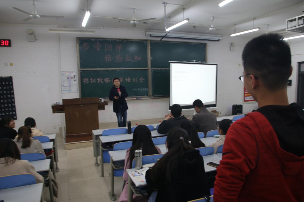 11月10日,英国365上市公司于文渊楼C216举办"书香润泽,格物致知"模拟授课大赛培训会。高得鲁、白青旺、尤洪浩三位研究生受邀担任讲解人,2018级、2019级约200名学生参加本次培训。
