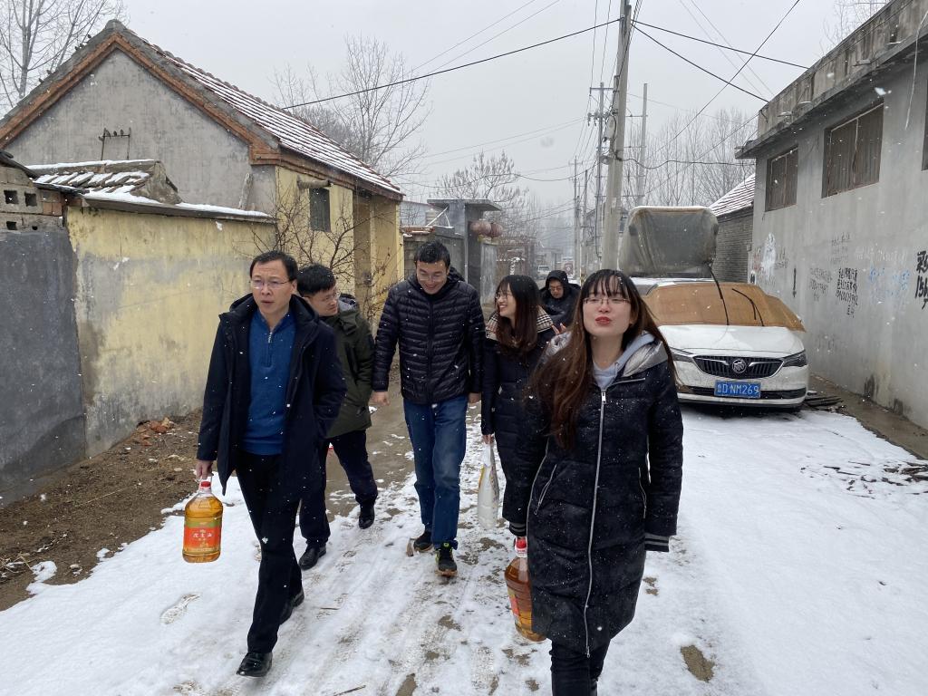 1月16日,党委书记谢德仁带领副书记杜伟,副院长赵曰峰、宋玉志,教工二支部党员代表,全体辅导员前往滕州、台儿庄进行家访。16号当天大雪纷飞,但是严寒和大雪并没有阻挡住温暖和爱心的传递。家访人员一行踩着冰雪,冒着严寒,按照原定计划前往四户贫困家庭。