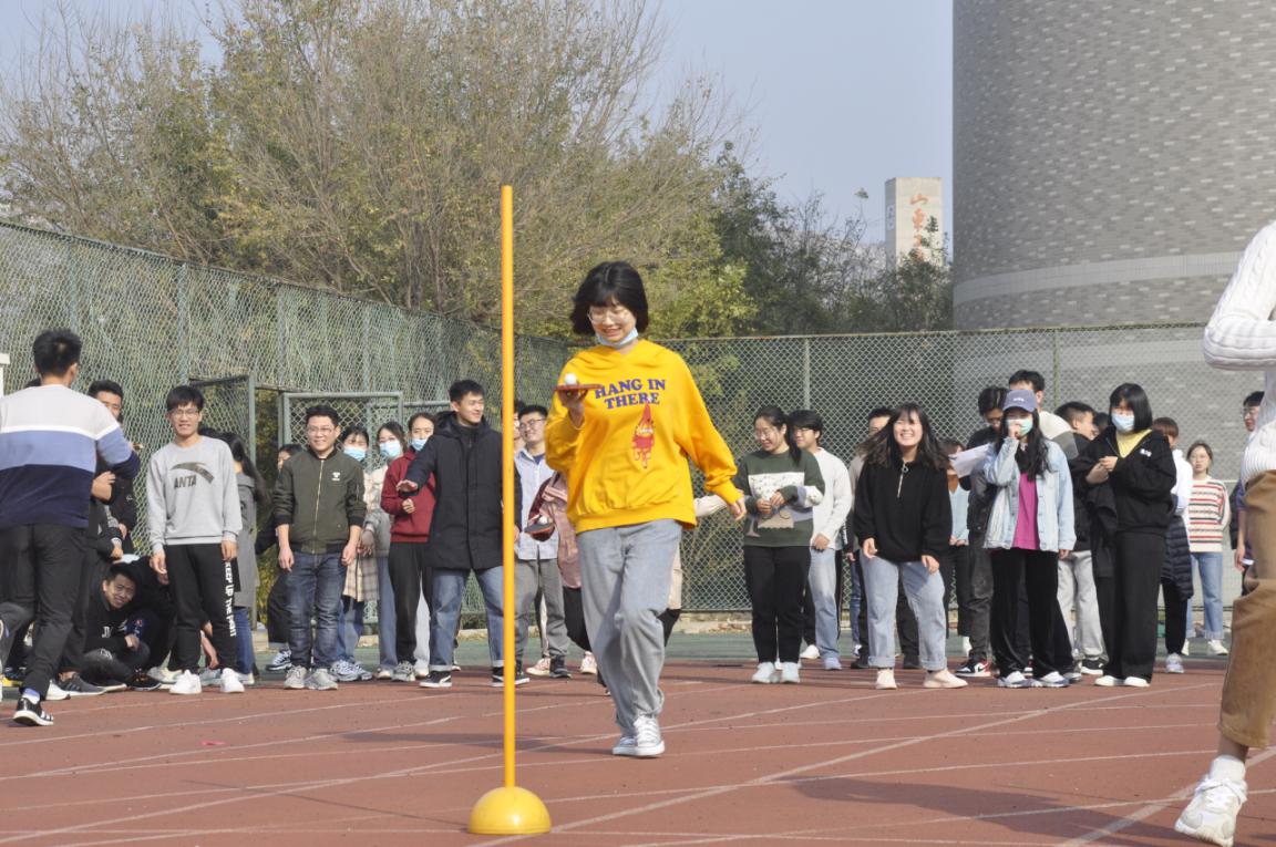 寒冷的天气丝毫没有减弱同学们高涨的热情,比赛在欢呼声中有序地进行着。趣味接力,由三个项目组成,分别是开合跳、企鹅漫步和夹球跑。不仅是对同学们的肢体协调能力,也是对同伴默契度的一项大考验。物电学院19级郝新源等四人获得趣味接力一等奖。