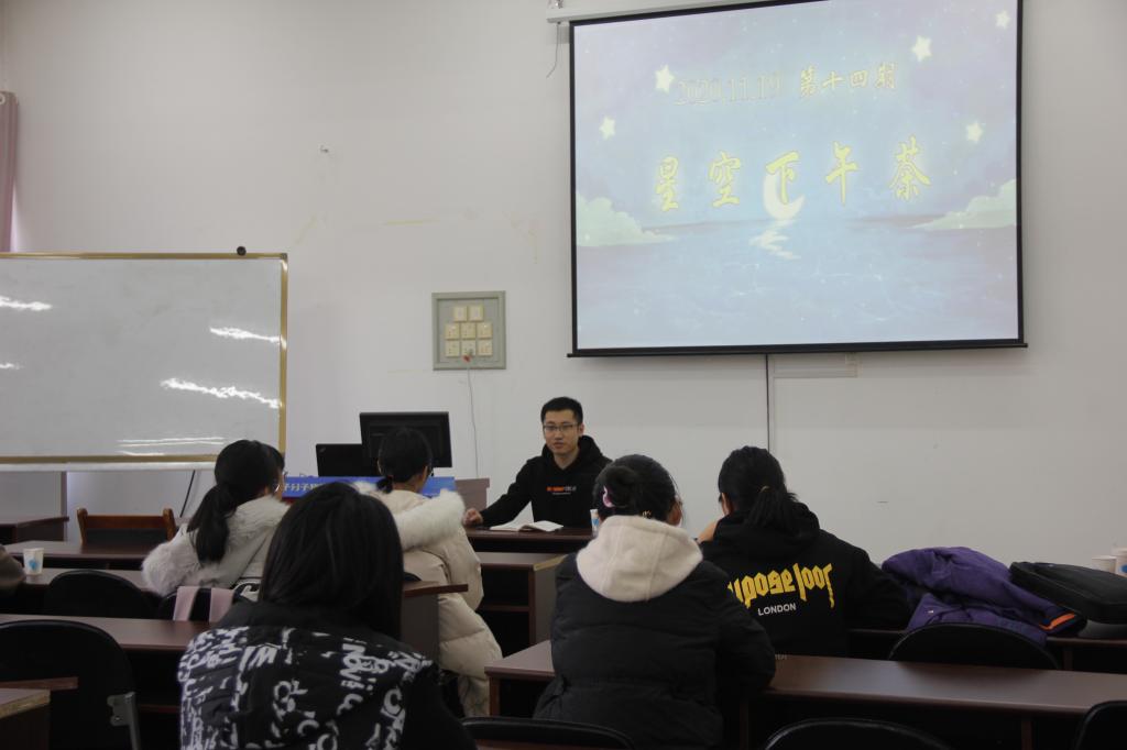 本次星空下午茶活动由两场组成。第一场交流会由何磊与同学们交流如何调节自身压力问题。他分析了存在压力的主要人群类型,通过分享自身考研经历中遇到的种种压力,展现生活中压力的具体表现,进而列举了存在压力的具体原因。他谈到自身缓解压力的方式方法,鼓励同学们遇到压力,多和家人朋友交流、积极参加体育活动。他指出,压力是把双刃剑,既可以在紧张氛围中提高我们的兴奋感,也会在生活中带给我们各种烦恼,没有人的生活是一帆风顺的,我们都应直面压力,学会在人生低谷处蓄力反弹。第二场交流会上,张超通过分享自己学习和工作经历,指出在新背景下,学生应学会做好自己的人生工作规划。他讲述身边学生的真实故事,并从生活习惯,做事态度,努力程度等几方面分析他们成功的原因,来劝勉同学们不应虚度光阴,而应在生活中积极探索,找到自己人生的目标方向。他特别指出,在大学中,学生应在学习上好思好问,在生活上做好时间规划,培养好自己的独立自主能力,做到在思想上独立,在行为上自主,从而进一步加深自己对未来方向的认识。活动中同学们热情活跃,积极提问,两位主讲人也一一耐心回答了同学们的疑问,至此,本次活动圆满落下帷幕。