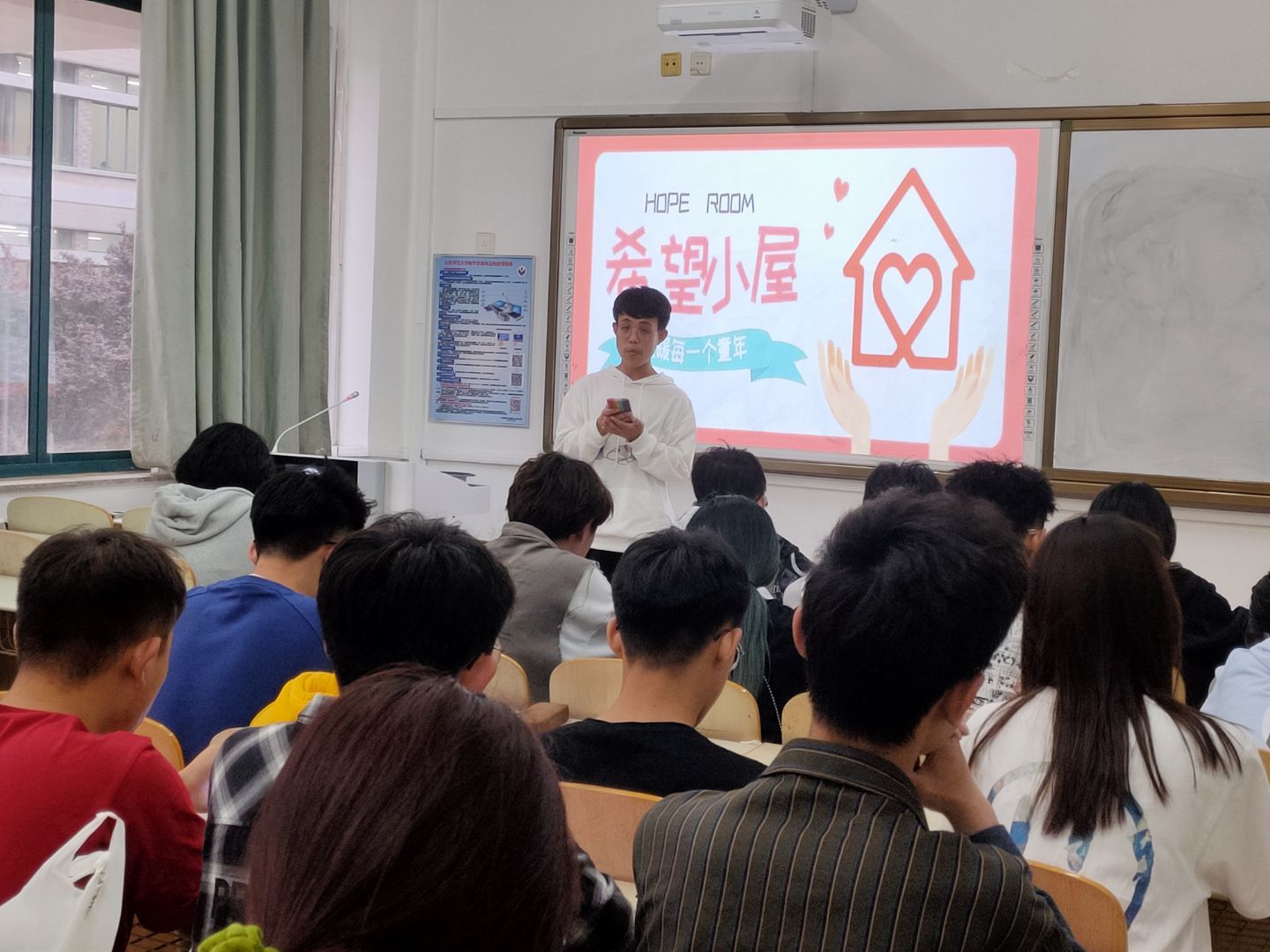 凝聚爱心力量,点亮希望之光。学院青志协举行“爱心捐赠活动”和“爱心义卖活动”,号召每一个物电人捐赠闲置书籍和物品,贡献物电学子的青春力量,所收集物品于c区进行集体义卖,义卖所筹得的资金全部交给“希望小屋”项目。涓涓细流汇聚大爱江海,点点星光闪耀希望银河。5月8日,他们向学院全体教职工及学生发起倡议,鼓励大家根据自身实际情况进行捐赠,募捐过程公开透明,依法规范,集资全部用于“希望小屋”建设活动。此外,为进一步扩大“希望小屋”校园影响力,使同学们充分了解项目的背景及意义,5月10日学院青志协特举办“小屋大爱”主题团日活动,召集同学们在c257教室,观看“希望小屋”宣传片、优秀收集视频并聆听优秀推文。“一间希望的小屋,一个逐梦的空间”,团日活动上同学们看到孩子们的学习空间条件后深受感触,纷纷表示想要尽自己所能,为孩子们送去一份温暖、一份希望。