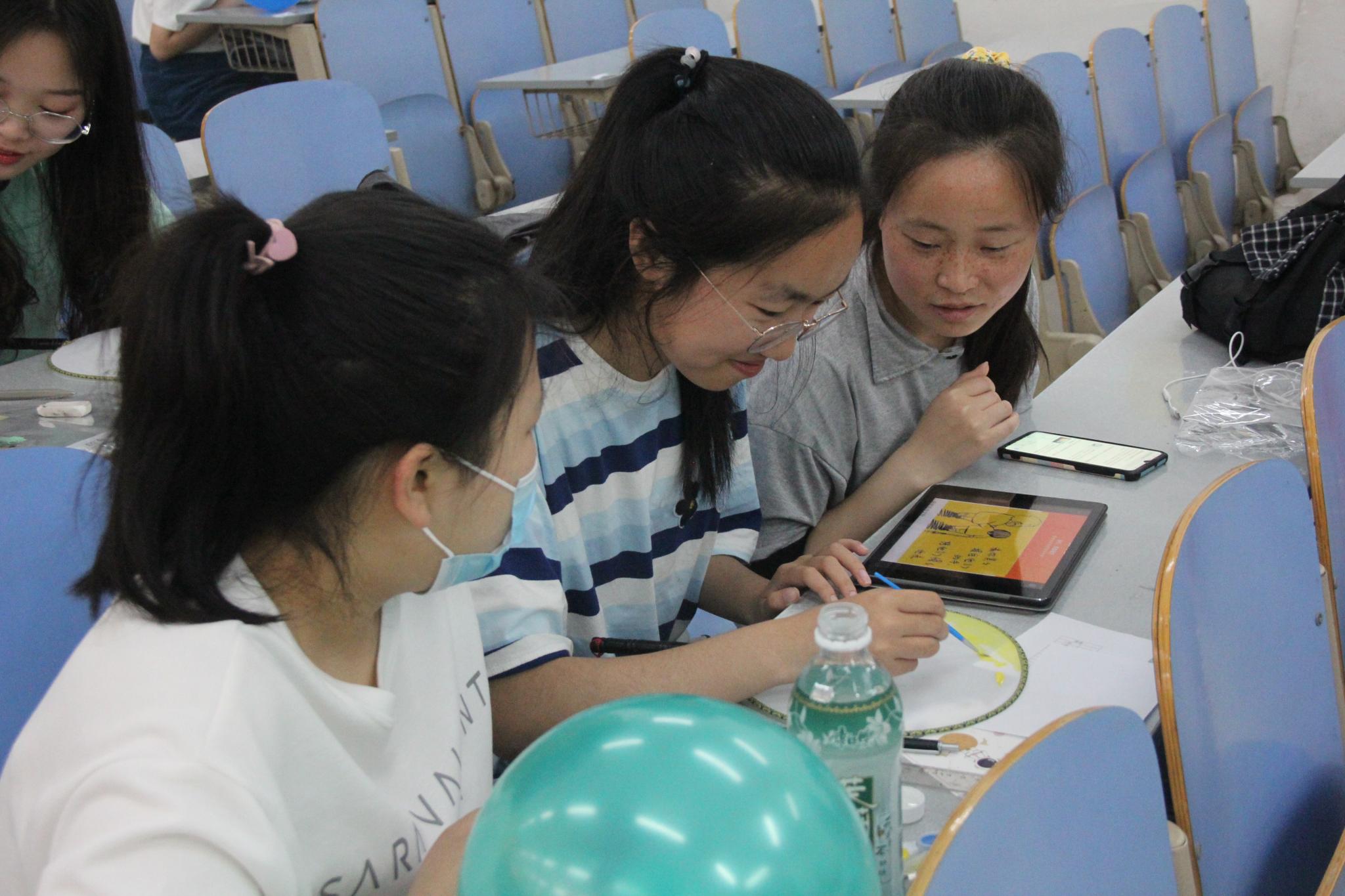 活动主持人李雨晨为众人介绍了活动规则,并强调本次活动旨在激励同学们热爱祖国、孝顺父母、尊师重道、与人友善,让同学们以健康的心理,积极的心态向党的100周年献礼。团扇制作主题由绘山河,爱祖国;感师恩,爱亲长和悦己心,纳他怀三部分构成。同学们以团扇为媒介,尽情抒发自己对祖国,对老师,对家人,对朋友的饱满感情:或胸怀壮志,在宏伟山川之上勾勒出一抹艳如五星红旗的朝日;或饱含恩情,以笔为剪,拼接出每个人都曾感同身受的温暖;或意气风发,与友携手,脚踏实地,仰望星空。本次活动共有9人获得一等奖,9人获得二等奖,9人获得三等奖。参赛选手寇慧玲表示,自己DIY折扇上呈现的画山水画一是借用“天长地久有时尽,师恩绵绵无绝期”的意蕴,二是父母热爱与自己一同游览祖国大好河山,山水之间饱含自己与父母的满满回忆。程瑞杉表示,本次折扇是与朋友齐心协力创造而来,从折扇的创造中切实感受到朋友的可贵,同时更加体会到自己创作的主题——友谊万岁的真谛。各类主题下同学们的扇面内容不尽相同,但其所想表达的对党的热爱,对亲长和老师的感激或是对友人的喜爱却异曲同工。