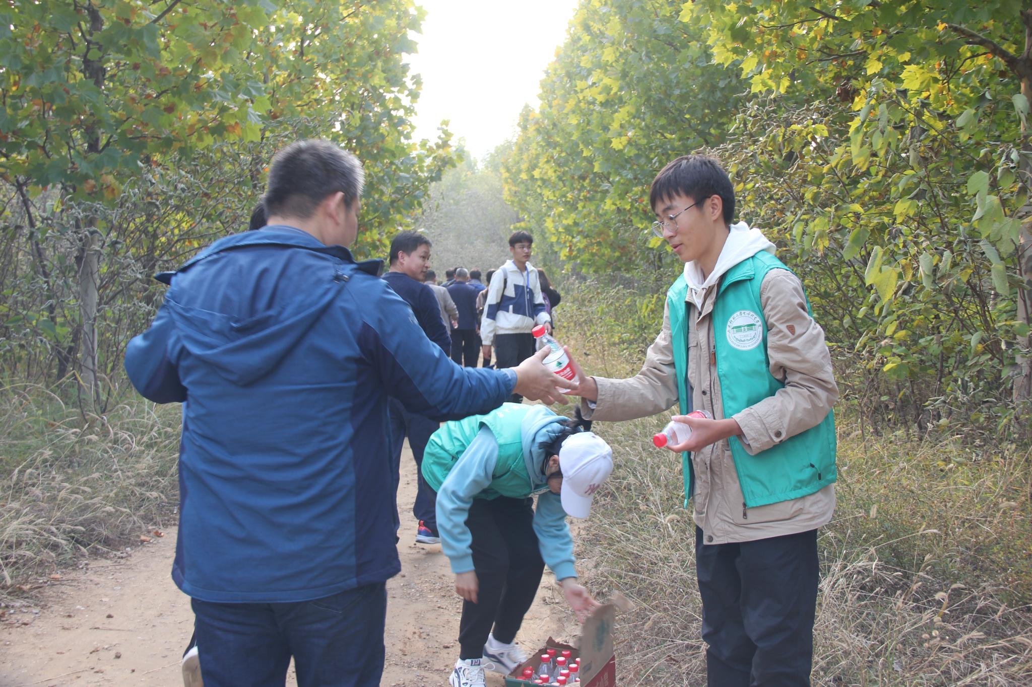 下午两点,教师们在图书馆前集合并合影留念。随着开枪仪式的一声清脆枪响,本次活动正式拉开了序幕,教师们激情高涨,蓄势待发,抵达双龙山脚,相继朝着山顶前进。起初,教师们亲密交谈,有说有笑,十分放松,营造出一派其乐融融的氛围。半小时后,教师们开始有些吃力,但是并没有人松懈、放弃,他们互相鼓励,相互搀扶,奋力攀走。在行进途中,由专门安排的志愿者们给老师们递水、拍照,给教师们提供力所能及帮助,呐喊助力,为其做好保障。经过一个半小时左右的努力攀走,教师们全部抵达目的地并成功打卡,每个人的脸上都洋溢着满足和自豪笑容,笑声回荡在山风中,汗水也铸成了成功的徽章。老师们纷纷表示,登山活动舒缓了平时工作压力,于人的益处是多方面的,对阳光、积极、健康心态养成产生了潜移默化的影响。