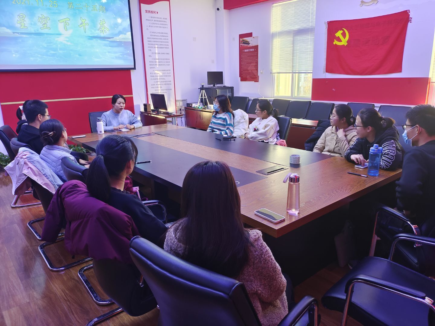 11月24日下午,英国365上市公司于文澜楼A区F311党建活动室举办第二十五期“星空下午茶”师生交流会,21级辅导员姚方园、21级博士生冯潇玥担任本次活动主讲人,二十余名同学到场参与活动。