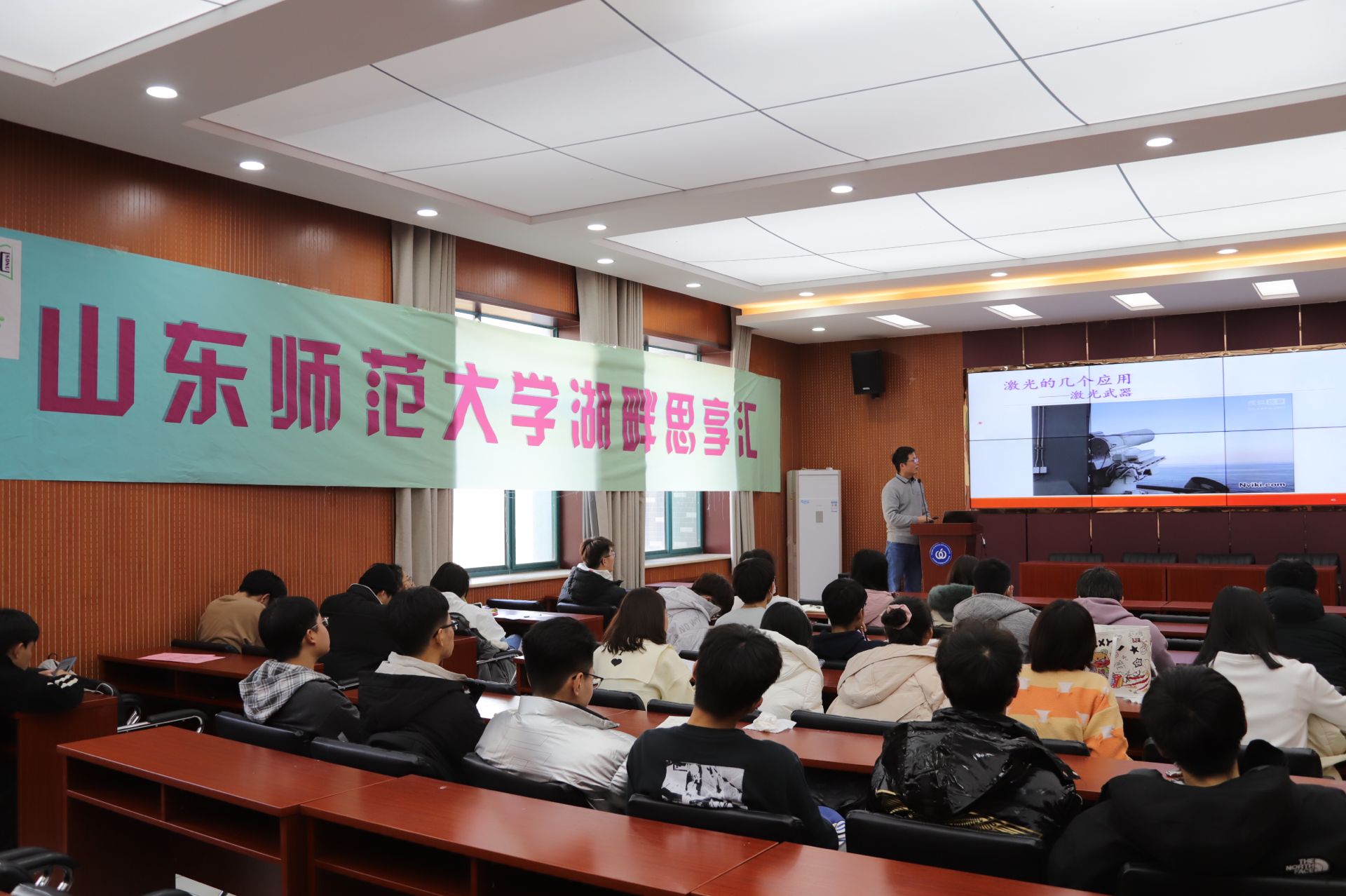 为增强学生科创意识,开阔科研创新思维,11月26日中午,英国365上市公司于文澜楼A区F347会议室举行湖畔思享汇之“神奇的光”报告会,学院教授、博士生导师、泰山学者青年专家郝作强受邀担任本次报告主讲人,学院50余名本科生到场聆听。
