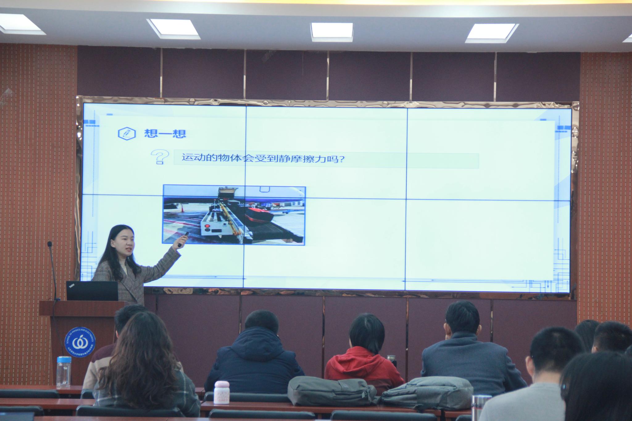 本次从业技能大赛要求课程为高中组的《摩擦力》和初中组的《杠杆》,每名参赛选手有三分钟授课时间,借助PPT以独特方式展示教学课程,突出新课程理念。比赛过程中,各参赛选手准备充分,教学过程设计合理,语言表达准确生动,教学方法独特新颖,他们讲出水平,赛出风采,肢体语言与优秀板书相得益彰,模拟互动与风趣讲解相辅相成,充分展现参赛选手控场能力与个人魅力。选手们端庄大方,挥洒自如的仪态彰显出我院学生扎实教学基本功和昂扬学子风范,展现出教师这一角色所应秉持的态度和相应责任。评委老师认真倾听,适时指出选手不足之处并加以指正,最后为选手评分。赛后,参赛选手们纷纷表示参加从业技能大赛对他们而言是一次宝贵历练,使自己对教师职业认识与感受更加深刻,专业技能学习规划更加清晰,在日后就业竞争中会更具优势。