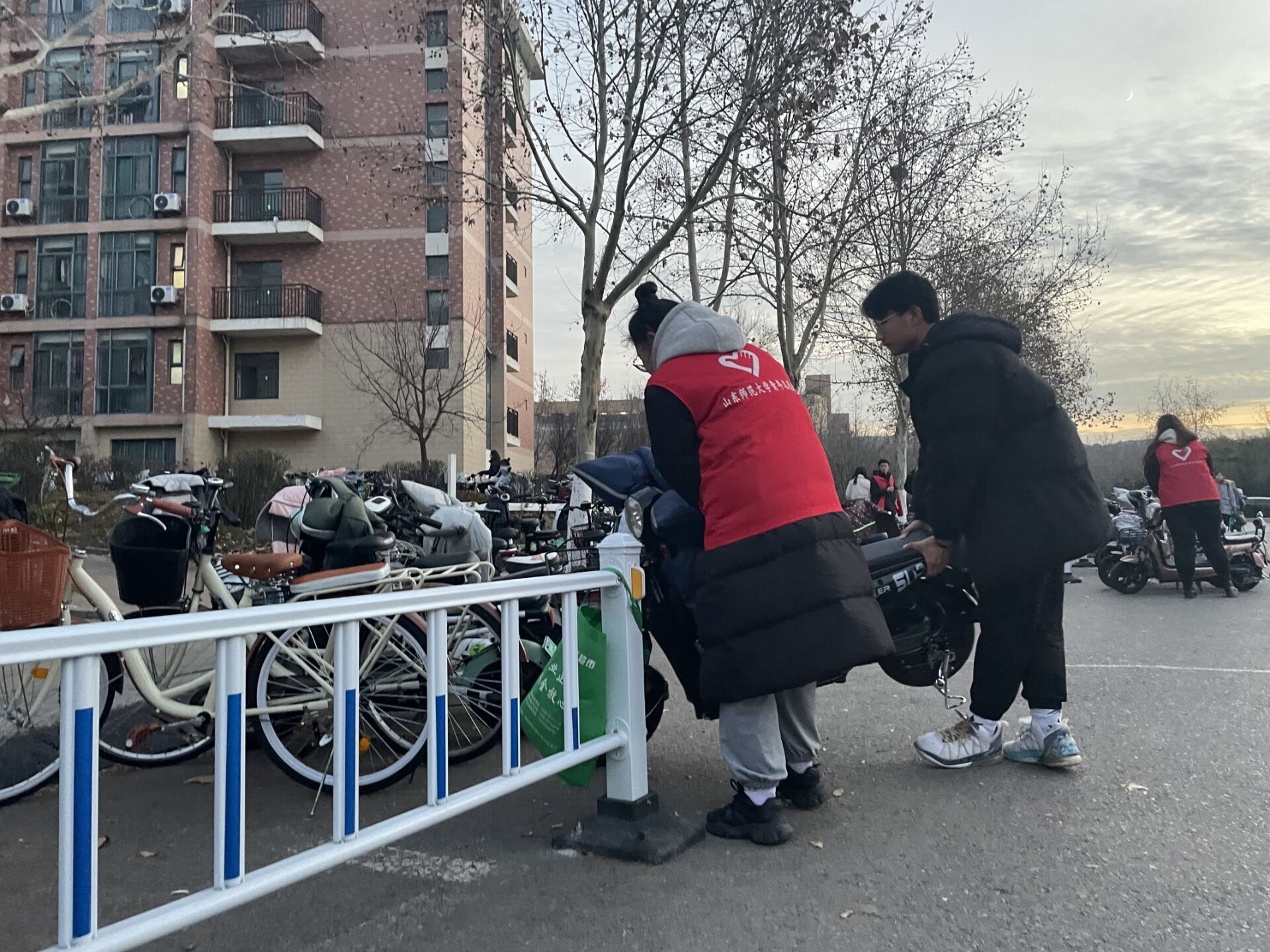 活动进行期间,志愿者在规定时间地点完成集合,由青志协负责人安排分组,分别对路边停放不当车辆进行重新摆放,并对停放电动车的同学们进行指引、帮助与宣传,助力同学们养成有序停放车辆习惯。志愿者们将车辆按顺序摆放在规定位置,在志愿者们的努力下,原本杂乱无章的车辆摆放变得井井有条,校园更加整洁,且解决由于车辆杂乱导致的路面拥堵问题。同学纷纷表示,通过本次活动,保证了宿舍楼下车辆摆放整齐,楼下电动车乱停乱放现象有所缓解,路面变得更加宽阔,道路拥挤问题得到进一步改善,大大方便平时生活出行。