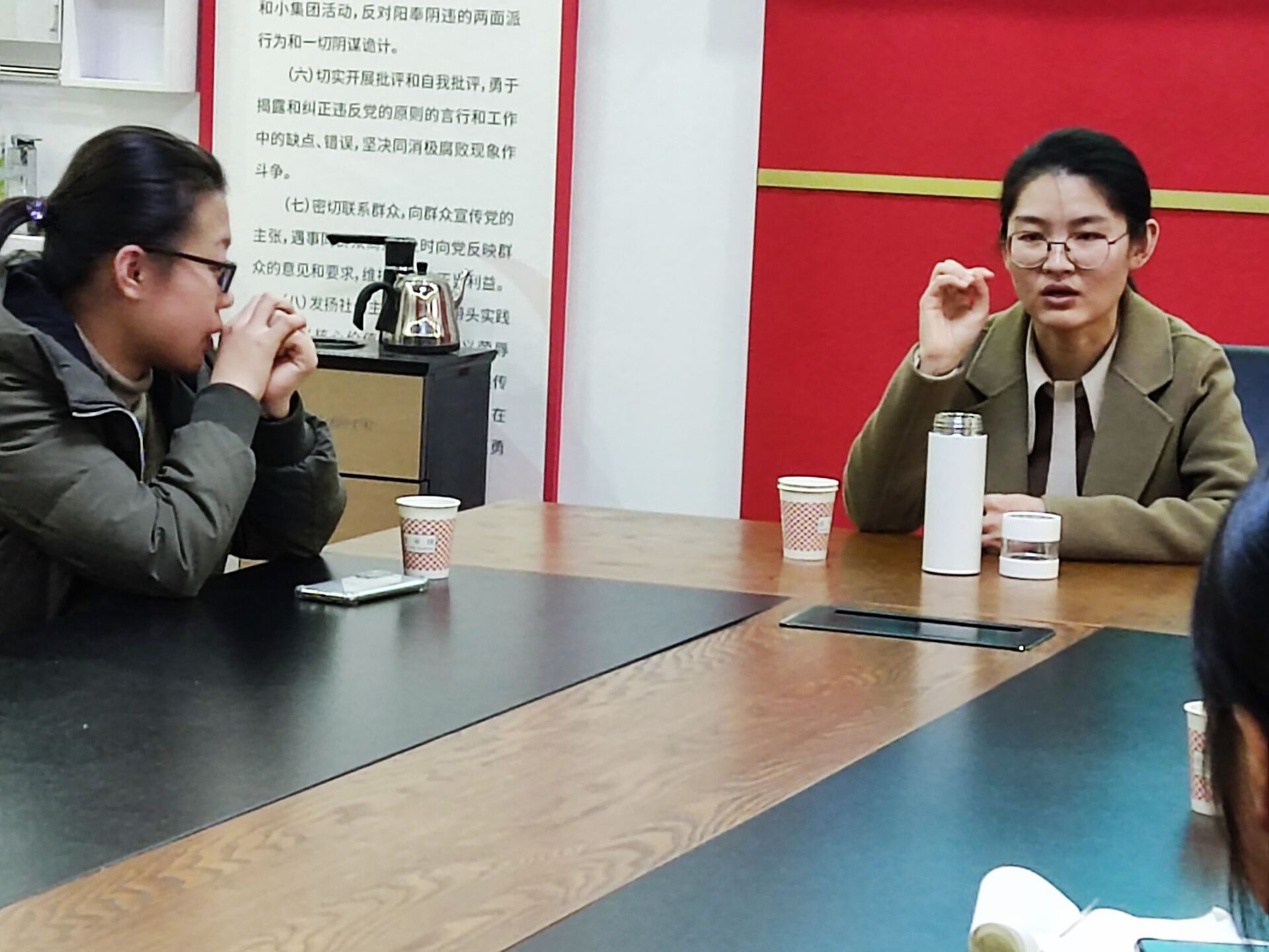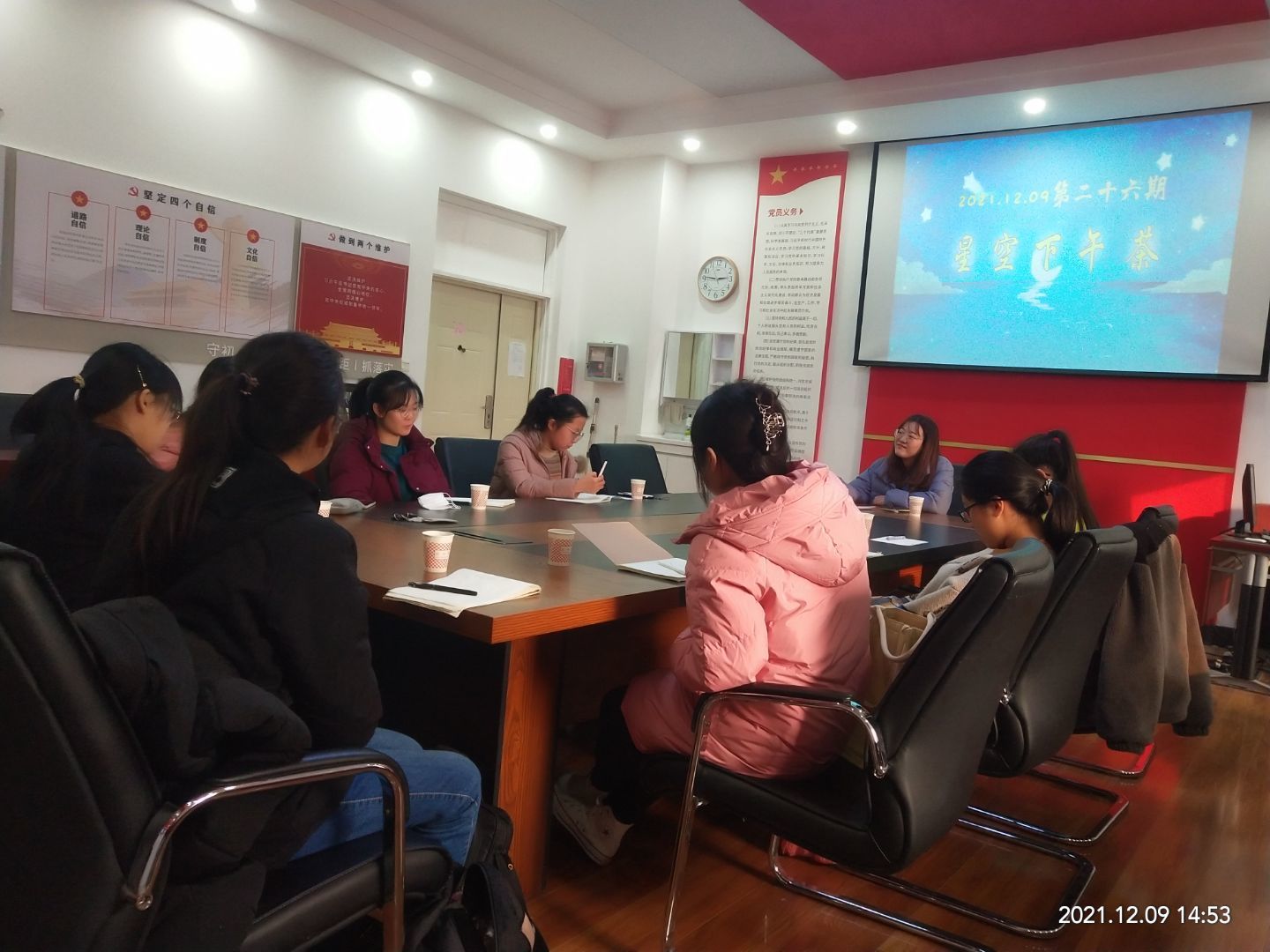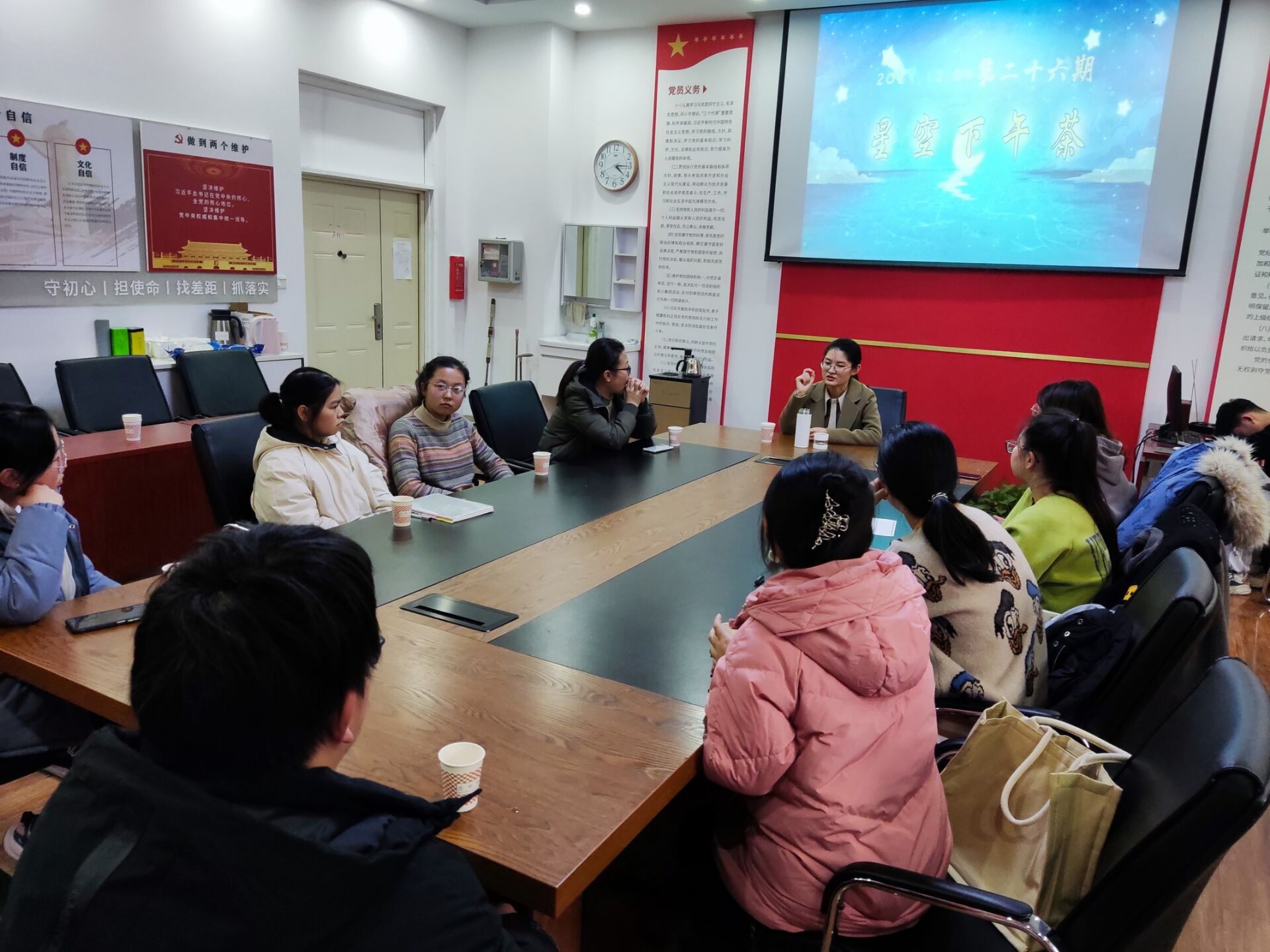 12月9日下午,英国365上市公司于文澜楼A区F311党建活动室举办第二十六期星空下午茶师生交流会,学院21级辅导员尹素月、19级博士研究生郝倩倩担任本次活动主讲人,二十余名同学到场参与活动。