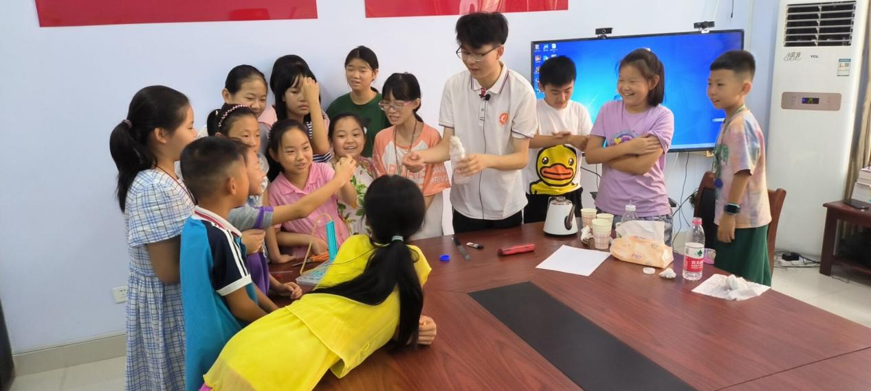 点滴爱心燃希望,共筑梦想向未来——“希望小屋”社会实践。物电学院高度重视“希望小屋”建设与帮扶工作,与省内各地市、县区广泛开展了多次帮扶活动,学院学子组建起“同心同德,物燃星光”暑期实践服务队,前往德州市德城区开展活动,为当地“希望小屋”儿童提供书法、物理实验等多种小课堂学习辅导,并捐赠书籍500余本。服务队队员们发挥专业特长、奉献青春力量,有效充实了“希望小屋”孩子们的生活,丰富孩子们的精神世界,开启了一场爱与希望的关爱之旅。