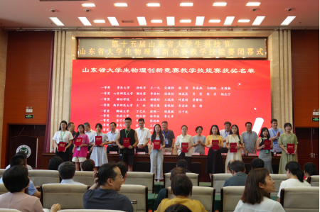 近日,第十八届山东省大学生物理教学技能大赛在济宁学院落下帷幕,我院参赛的14名本科生和研究生积极备赛、沉着应赛,展现出优秀教学素养,其中7人获一等奖、3人二等奖、4人获三等奖;李健、高嵩、孟现美、高守宝、王兴海、刘丹华、徐纪华7位老师被评为优秀指导老师,我校被评为优秀组织单位.