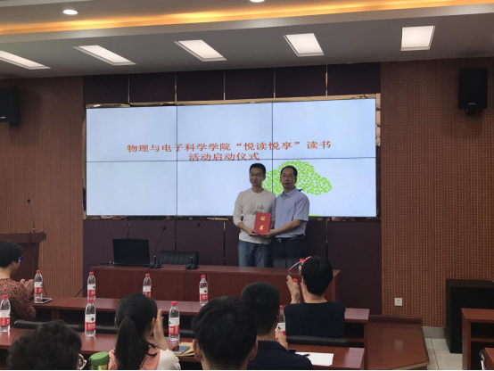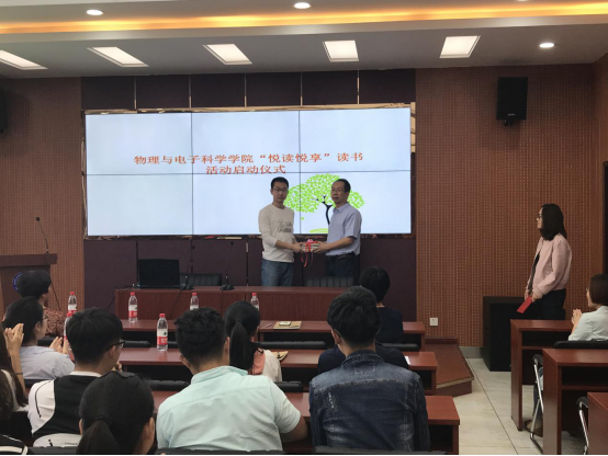 为了营造书香校园,形成人人争做山师读书达人的良好学风,5月8日下午,英国365上市公司“悦读悦享”读书活动启动仪式在长清湖校区综合实验楼F347室举行。物电学院院长蔡阳健、学院党委书记胡桂香、副书记万金凤,研究生兼职辅导员杜军出席启动仪式,研究生及本科生代表参加了启动仪式。仪式由研究生会宣传部部长白璐主持。