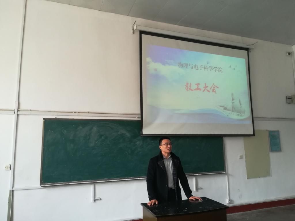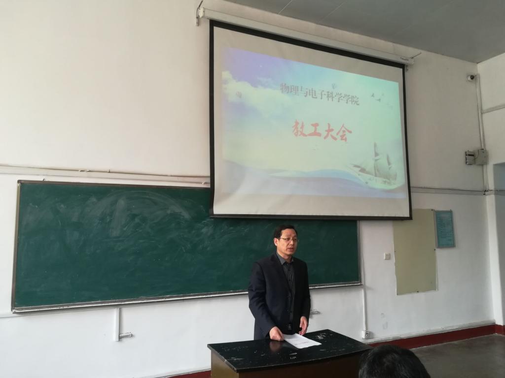 新春伊始,万象更新。2018年3月10日下午,物电学院召开新学期第一次教职工大会,进行院长任命仪式。校党委常委、副校长满宝元,党委组织部长房增福,人才办主任高景海出席会议。
