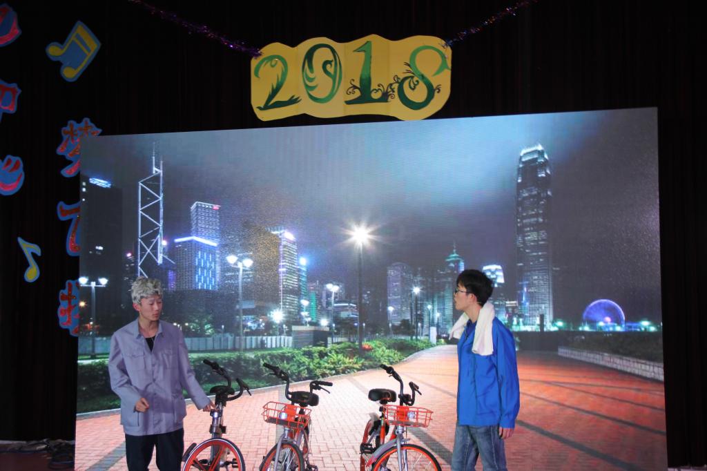 晚会以一段精彩的学生“快闪”视频开启。歌曲《大梦想家》绚丽开场,富有激情的演唱让人感受到青春的活力,绚烂动感的舞蹈点燃了全场的气氛,本次晚会也以此拉开帷幕。在本次晚会中,演员们分为两队——“新时代”队和“新征程”队,各队轮番登场进行表演。首先,“新时代”队带来的歌曲串烧延续了激情开场舞的热烈。四位演唱者凭借其富有感情的嗓音,加上独特的舞台效果,使全场气氛逐渐升温。而接下来,在“新征程”队闫家奇与郑泽宗带来的相声表演《男朋友女朋友》中,两人一唱一和、妙语连珠,生动形象地展现男女生相处时因性格差异而发生的趣事。表演结束后,全场观众意犹未尽,喝彩声如潮水般涌来。伴随着热烈的掌声,晚会穿插了学院第四届学术科技节闭幕式和博视雅“学子之星”颁奖典礼,大屏幕上开始闪现一张张照片,这些照片见证着我院学生在科技方面取得的优异成绩。各获奖学生代表上台领奖,极大激励了在座学生向科研道路迈进的信心。之后,一段学院领导、教师、学生的新年寄语视频让观众们感受到温暖、鼓励和奋进的激情,同学们禁不住热烈鼓掌表示感谢。大型舞蹈《不忘初心》表达了党带领青年不忘初心,砥砺前行,为实现中国梦而不懈奋斗的信心和决心。学院女教师们带来的小合唱《十送红军》不仅彰显了十九大精神,而且让同学们感受到老师们除了严谨治学、多才多艺的另一面。诗朗诵《时间的入口》站在历史新方位,吹响了新时代前进的号角。现场观众被强烈的时代使命和爱国激情所感染,全体起立,高唱《我爱你,中国》,晚会现场掀起了第一次高潮。2017级班长团支的特别节目也是精彩不已,各班班长团支在舞台上劲歌热舞,在一束灯光的指引下,2017级辅导员方芳走上舞台与班团共舞,台上台下成了一片热情的海洋。之后,爵士舞、新疆舞、歌曲对唱、串烧、小品轮番上演,引发观众的一次次掌声和欢笑。本次晚会的一大亮点是由学生会主席团、各部部长带来的舞蹈,铿锵的节奏、火热的舞蹈,将全场气氛推向高潮。最后,晚会在合唱《梦想天空分外蓝》中落下帷幕。