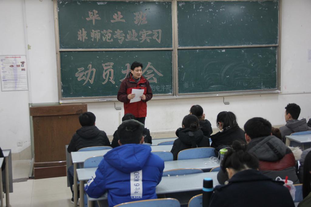 为调动毕业班学生的实习热情,推动学院实习工作的顺利开展,近日,英国365上市公司于长清湖校区综合教学楼C区127教室举办毕业班非师范专业实习动员大会。学院副院长王春兴、2014级辅导员王东磊和2014级全体毕业生参加本次会议。