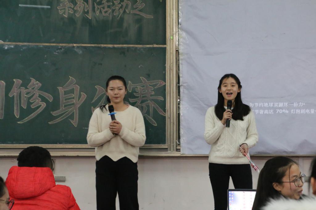 活动伊始的开场舞点燃全场,带来视觉盛宴,带动现场氛围。随后,主持人表示,文明修身是对中华优秀传统文化的传承,党的十九大报告指出,深入挖掘中华优秀传统文化蕴含的思想观念、人文精神、道德规范,结合时代要求继承创新,让文明修养展现出永久魅力和时代风采。紧接着,一段精彩的开场视频拉开了本次大赛的帷幕,当参赛选手看到自己初赛、复赛一路走来的个人历程,与队友默契的团队协作,放松了心情缓解了紧张压力,经过简单展示各自队伍及亲友团后,比赛正式开始。答题过程紧张而激烈:选择题、判断题各支队伍使出浑身解术,开动脑力,既考验对知识的掌握程度又考验随机应变能力;抢答题不仅拼脑力更拼手速,F组2016级电子二班多次获得答题权,在集全队同学智慧后得出统一答案;风险题在各组同学进行简单商议后,定夺是否答题,当然只有运气与实力的结合的王者才能取得胜利。本次活动问题针对学院卫生细则、校规校纪和文明常识等方面进行考察。中场穿插卫生部歌舞串烧,这不仅活跃了现场气氛还为本次比赛增添趣味性。亲友团参与的游戏环节也是本次活动的一大亮点,八人一组的你画我猜,既考验团队默契程度,又体现个人在团队运作中的重要性。十九大中强调要更好凝聚团结奋进的正能量,此次活动更是对十九大精神的弘扬与践行。除此之外,卫生部成员出演的小品,引得现场观众阵阵爆笑,参赛队伍精心准备的才艺表演也为活动增添光彩。经统计各组分数,F组2016级电子二班摘得桂冠,设二三等奖数名,颁奖仪式结束后,卫生部全体成员集体合唱《红日》引起全场大合唱,并为活动画下圆满句号。