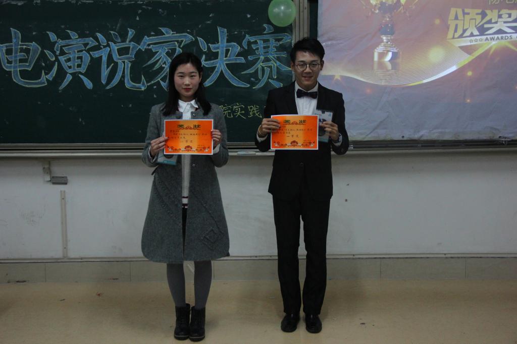 经过初赛和复赛的层层角逐,共有10名选手成功突围,晋级决赛。在简单回顾了初赛、复赛的精彩瞬间后,决赛也正式开始。选手们精神饱满、声情并茂,用丰沛的感情为现场同学展现了精彩的演说盛宴。其中,16级电子信息工程二班的刘宣钰的演说《以人为本,家国天下》用激昂高亢的语调从党为人民谋幸福和人民爱党、爱国两方面热情讴歌了党和人民的相互依存与相互热爱,赢得了同学们的阵阵掌声。值得一提的是,16级电子科学与技术班齐雪莲《以青春的名义为十九大打call》的演讲准确把握了十九大的基本精神,强调我们应怀有为中华民族的伟大复兴事业奉献青春的责任感和使命感,以不断的学习和奋斗实现我们的中国梦,也将比赛推至高潮。除此之外,15级物理一班齐洁的《寻梦》通过动情讲述了邻家姐姐刻苦学习、期待有一天能够带着已逝父母的照片在天安门广场看国旗升起的寻梦之路,用饱含深情的言语向同学们抒发了每一个人都应当不忘初心,寻个人梦、寻中国梦的炽热情怀。精彩的演讲感染了现场的每一位观众。在比赛间歇,实践部精心准备的幸运大抽奖、舞蹈以及文艺部精彩的暖场歌曲,活跃现场气氛的同时也赢得了同学们的阵阵喝彩。最终经评委严谨认真的评定,聂磊、齐洁成功摘得本次“物电演说家”大赛一等奖,刘宣钰、王泓洋、李恩惠三位选手荣获二等奖,齐雪莲、许至等五位选手获得三等奖。至此,在同学们热烈的掌声中,本次“物电演说家”决赛完美落幕。