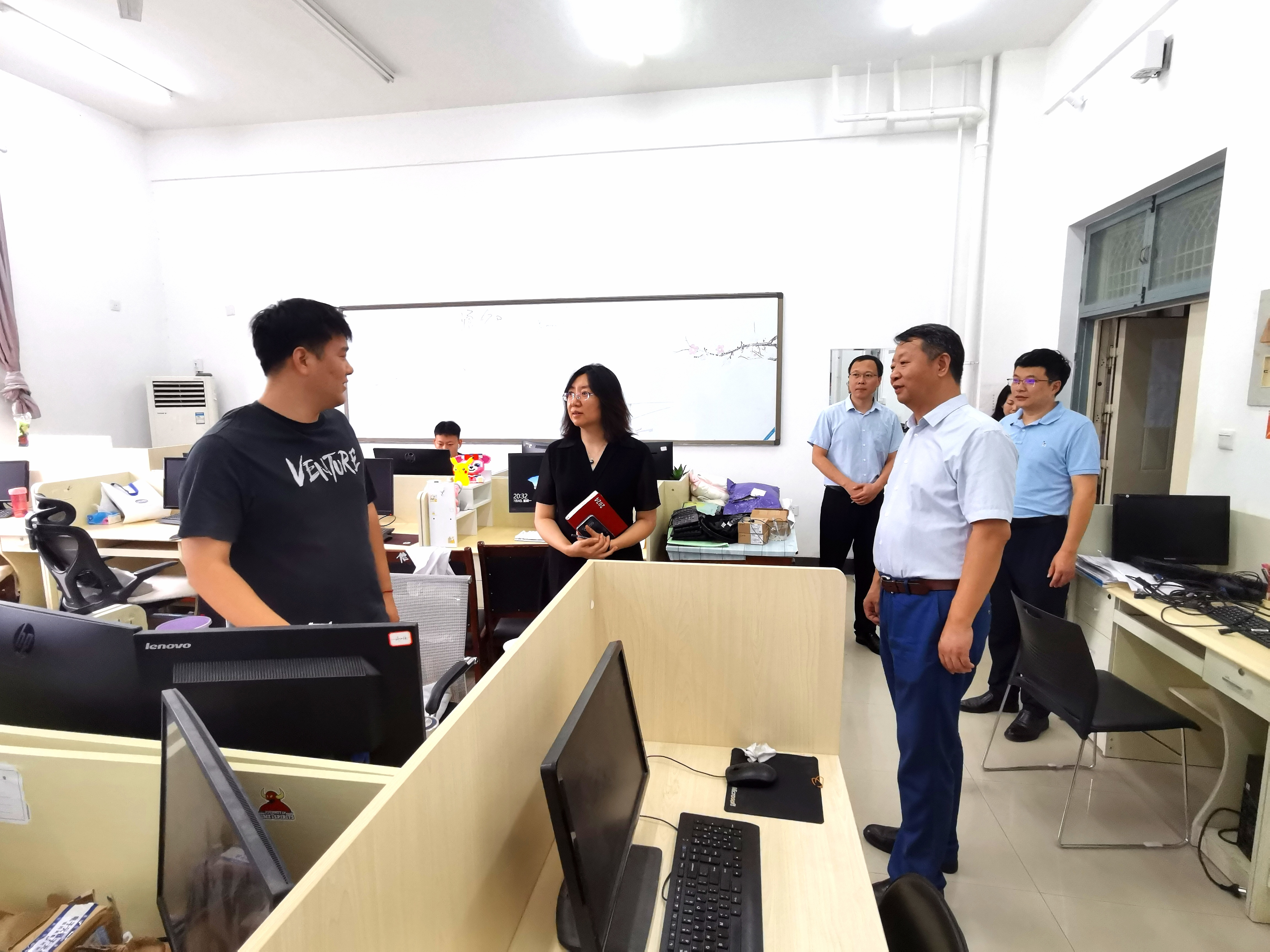 检查组重点检查了文澜楼五层空间改造现场,考察了学院师生的办公学习空间,慰问了刚刚返校的师生,在学院会议室和学院领导班子成员进行了座谈。学院党委书记谢德仁简要介绍了学院假期工作、师生返校和开学准备情况,对学院存在的困难和急需解决的问题进行了汇报;表示学院始终坚持走团队路线,凝心聚力谋发展,以学科建设为龙头,强化高水平师资队伍建设,聚焦立德树人根本任务,推动学院高质量发展。副书记杜伟、副院长宋玉志、王晶晶围绕人才队伍、学科经费、科研场地和学生培养等学院工作和存在的困难提出了建设性意见。检查组现场对学院提出的问题一一进行了回复并提供了解决方案。