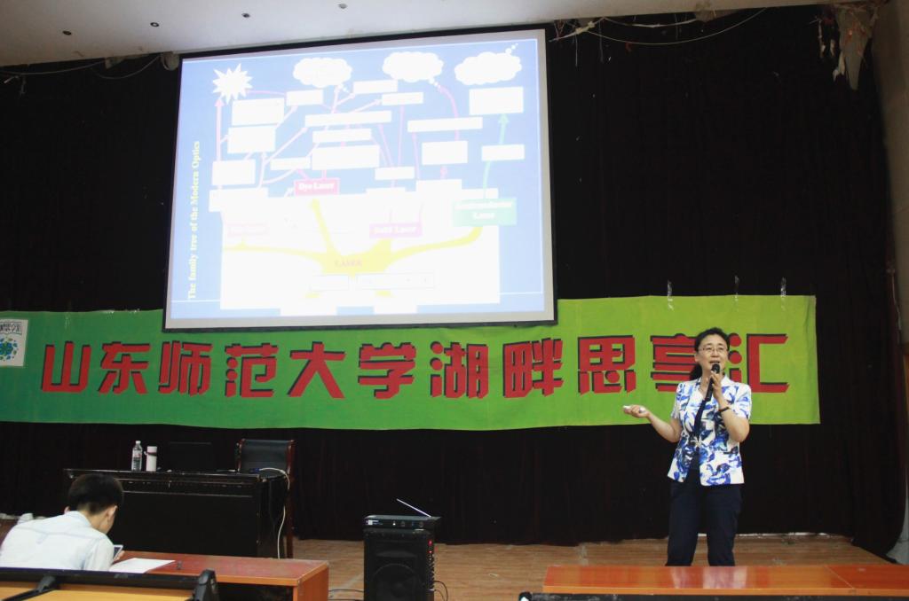 刘杰教授首先回忆本科时期学习的经历,拉近了与同学之间的距离,现场氛围逐渐活跃起来。刘杰通过介绍笔记本电脑、软键盘、超薄手机等科技前沿成果指出物理学对现代光电产业的突出贡献,包括传统光电产业、信息工程、医疗设备等诸多方面。随后,刘杰从十七世纪以来光学的萌芽谈起,经过惠更斯、麦克斯韦、波尔这些科学家几个世纪的辛勤努力,直到1917年爱因斯坦提出受激辐射理论才为激光的出现奠定理论基础。紧接着,刘杰详细讲解上世纪五十年代以来激光的发展以及其原理和条件。她指出,1960年世界第一台红宝石激光器的诞生带领激光踏上迅速发展的道路,激光的推广应用由此开始。激光不属于自然光,它的产生需要泵浦激励提供用以激发激光增益介质的能量,再由亚稳态上能级的激光工作物质实现粒子能反转,经过光学谐振腔提供的正反馈获得高增益,获得的激光具有强度高、发散小、相干性和单色性的优点,处理一些皮肤、视网膜脱落等医学问题,乃至激光武器对军事发展都有着突出贡献。最后,刘杰针对当今产业界的本科生及研究生存在的诸多浮躁问题进行批评指正,劝诫在校生注重强化基础知识理论,学会与人交流,崇尚敬业精神。至此,本次湖畔思享汇圆满结束。