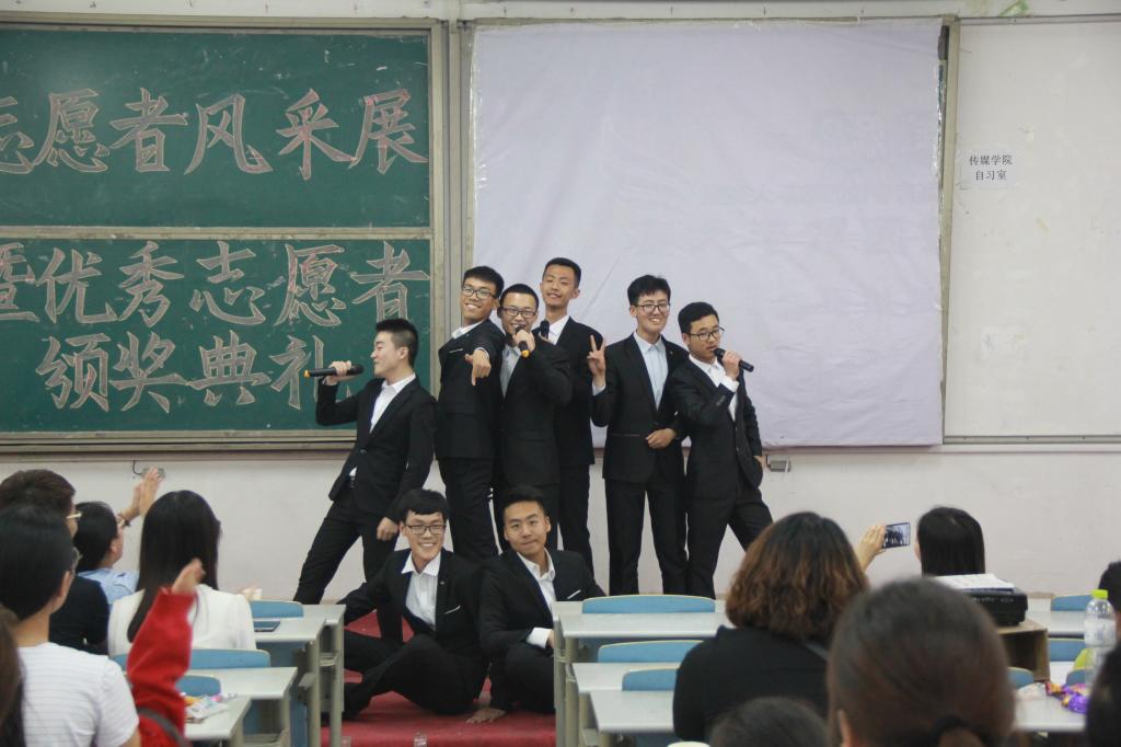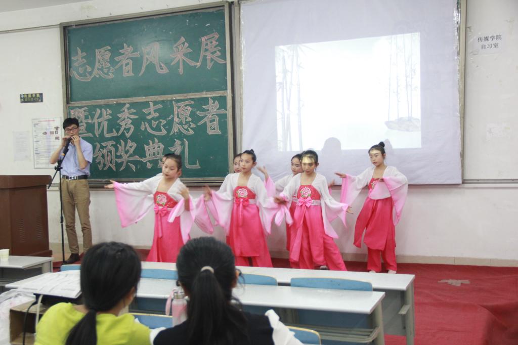 在一场动感十足的开场舞《Rookie》后,晚会拉开帷幕,紧接着,一段视频带领大家回顾学院青年志愿者协会本年度进行的济南西站服务、爱心支教、“阳光病房”、“爱洒校园”等志愿活动。而每当大屏幕上出现志愿者参与支教的照片时,台下来自乐天小学的孩子们便发出阵阵欢呼。随后,一个个精彩绝伦的节目被搬上舞台,小品《爱心义工》淋漓尽致地体现出志愿者无私奉献的崇高精神,手语表演《没有什么不同》则传达出聋哑人群体的心声。接下来,张居民与孩子们带来表演《山水之间》,优美的舞蹈伴随悠扬的陶笛声,将现场气氛推至高潮。地理与环境学院青年志愿者协会的歌曲串烧与话剧表演引人入胜,赢得了在场观众的阵阵掌声。最后,学院为2015级物理四班牛康迪、2015级物理四班曹嘉欣等8名同学颁发“优秀志愿者”证书。此次活动在同学们的欢声笑语中圆满结束。