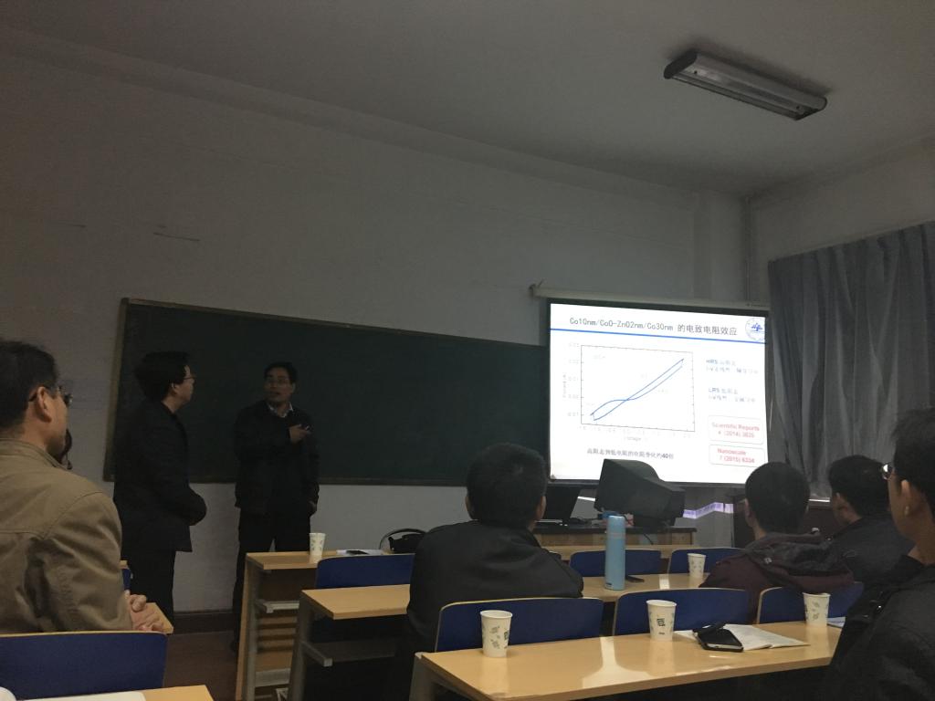 自旋电子学是近年来迅速发展的学科之一,在信息存储、处理、通信方面具有光明的应用前景。颜世申教授在报告中首先介绍了当前自旋电子学的几个前沿研究方向,随后介绍了山东大学自旋电子学课题组近年来的主要研究成果,包括氧化物磁性半导体、磁电阻与电致电阻复合的4电阻态、整流磁电阻效应等,最后介绍了山东大学自旋电子学课题组的研究团队、实验设备及其国际合作情况等。颜世申教授在报告会后和与会教师、研究生进行了热烈的讨论交流,受到与会师生的欢迎。