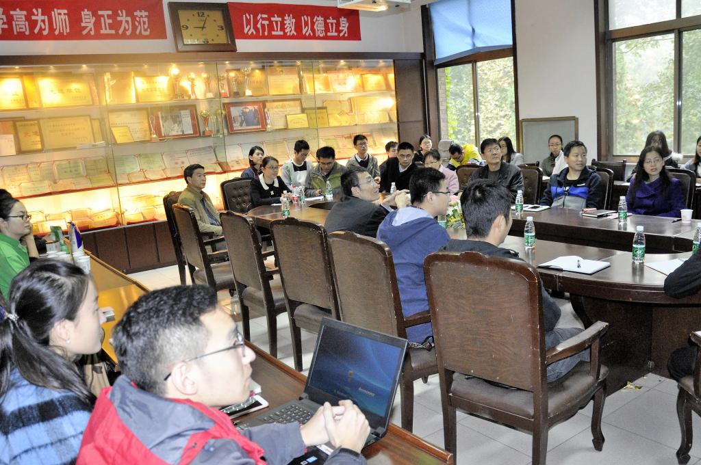 随后,邢磊教授与部分青年教师进行了专题座谈,青年教师们就自己在科研中遇到的问题与邢磊进行了交流。同时,多位青年教师就关于到美国斯坦福大学邢磊教授课题组开展学术交流,与邢磊进行了深入交流。邢教授表示欢迎各位青年教师及优秀的研究生到斯坦福大学进行深入的学术合作交流,他将积极为咱们学校的相关教师和研究生提供访问和学习的机会。