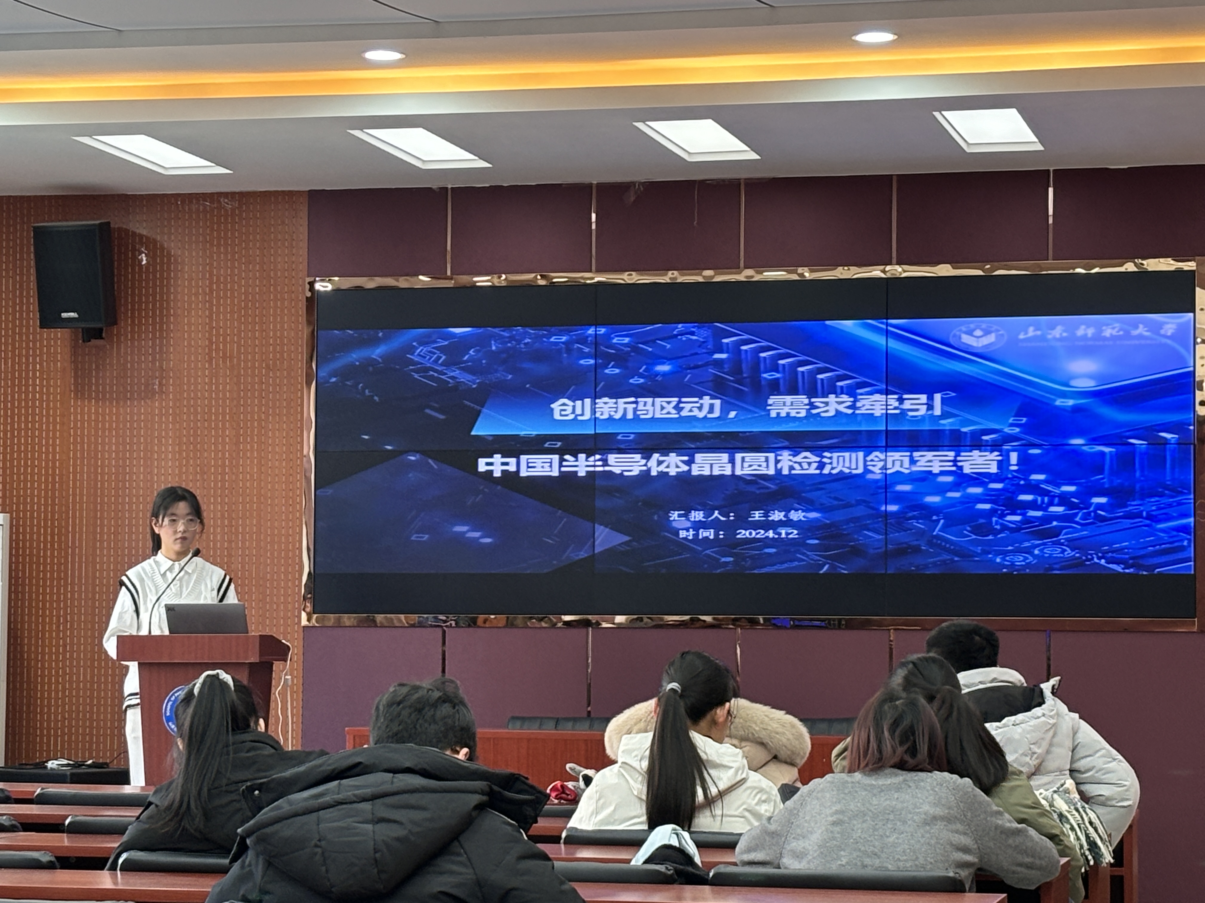 活动开始后,各项目负责人依次上台,结合精心制作的演示文稿,进行现场讲解,详细介绍了创新项目亮点,核心设计理念,市场前景及已取得的阶段性成果。各参赛项目涉及光电传感芯片、新型化工材料应用、新能源的转化利用等多个先进技术领域,集中展示了前沿技术在相关领域的实践性转化。例如“驭光益农”项目利用先进传感器,搭建植物对光能转化利用的“中转站”,打造能量转化的新生态;“肺疫先知—早期肺癌检测先导者”项目聚焦时兴的医疗健康问题,结合传感器技术,展现其在预防医学领域应用的可行性,获取了产品的市场感知度。