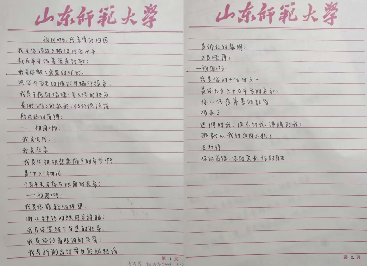 为传承中华优秀传统文化,展现学生的爱国心声,增强同学们的国家认同感和民族自豪感,培养积极向上的生活态度,学院开展“献礼新中国成立七十五周年”书画展示活动。作品围绕爱国诗词、祖国新貌等主题,从挥毫“数风流人物,还看今朝”到勾勒山河盛景,楷书笔画规整、行书笔锋灵动。