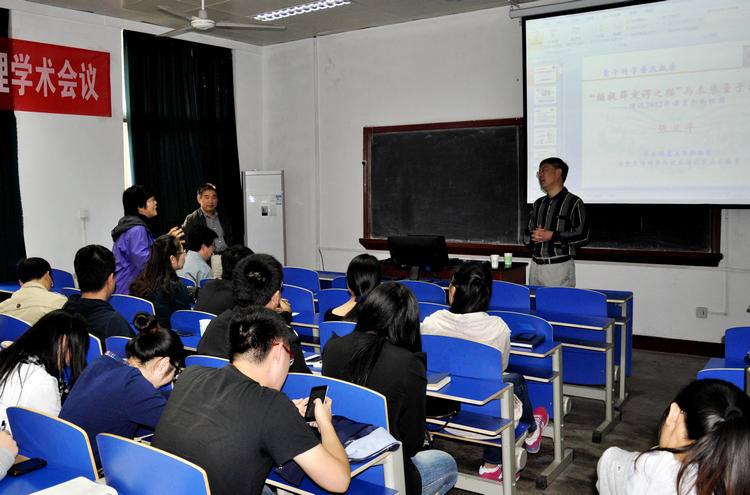 张卫平教授长期从事超冷原子系统的自旋动力学、量子操控、集成原子光学等国际前沿方向的实验和理论研究工作,是国际上公认的超冷原子系综与光作用的矢量量子场论的创始科学家之一。在20日上午的报告中,张卫平教授介绍了薛定谔猫论和量子技术的发展历程,特别是激光技术和量子论的进展,并对原子钟的产生背景、过程及其在量子通信、宇航等领域的应用进行了详细的介绍。报告会上张卫平教授还回答了与会师生所提出的问题,其妙趣横生的语言不时引起大家会心的微笑和掌声。报告会由物理系主任孟庆田教授主持,研究生院院长王传奎教授及学院各学科点部分硕博士研究生和导师参加了报告会。