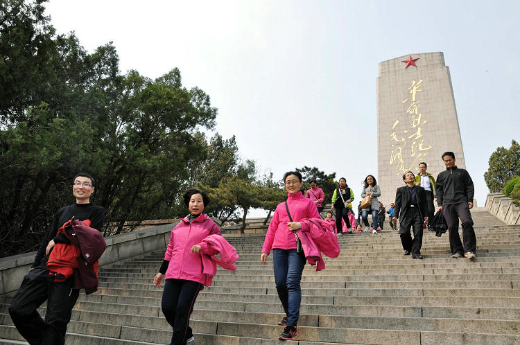 英雄山上,游人如织,松柏吐翠,鸢飞莺鸣。